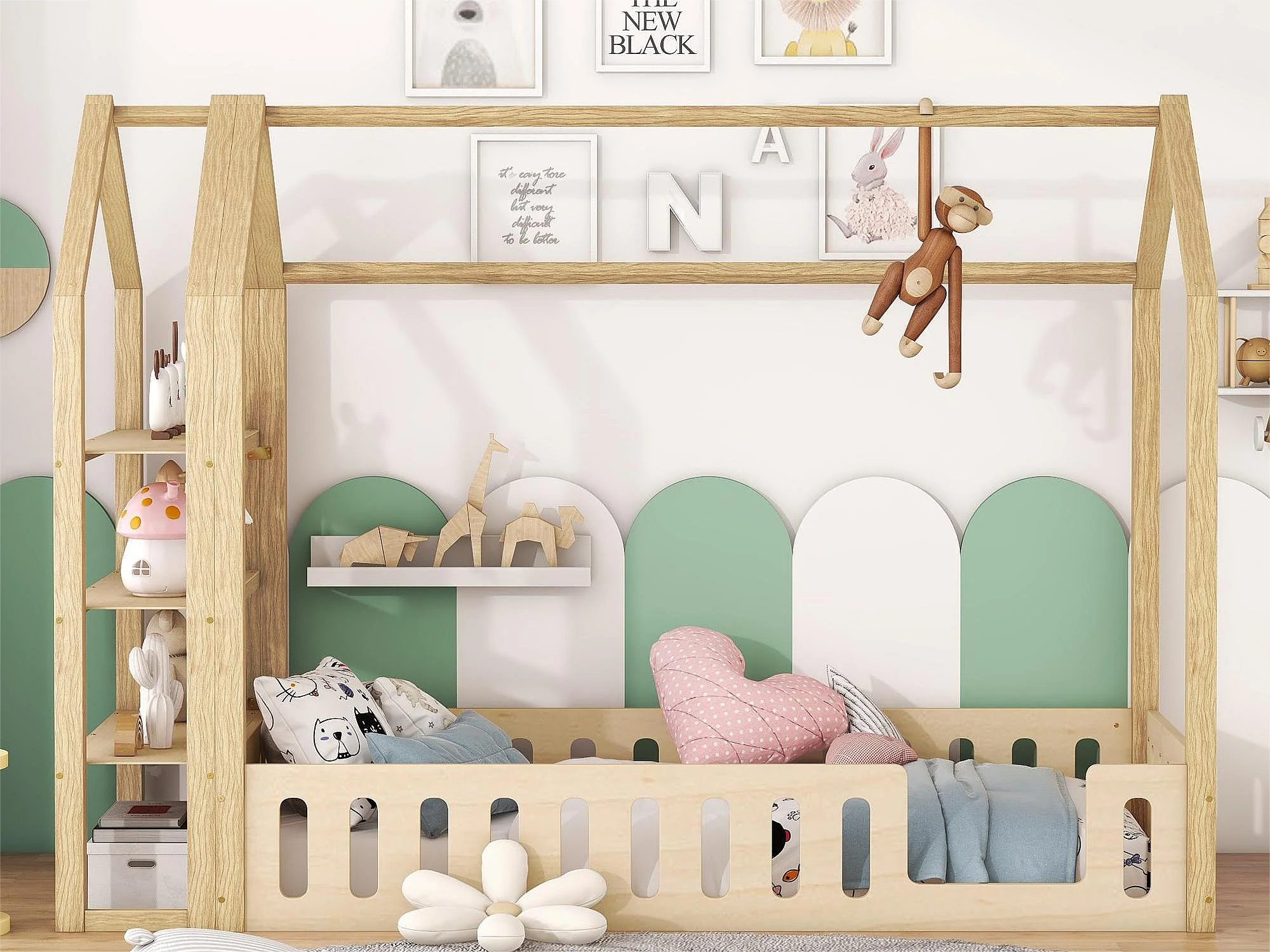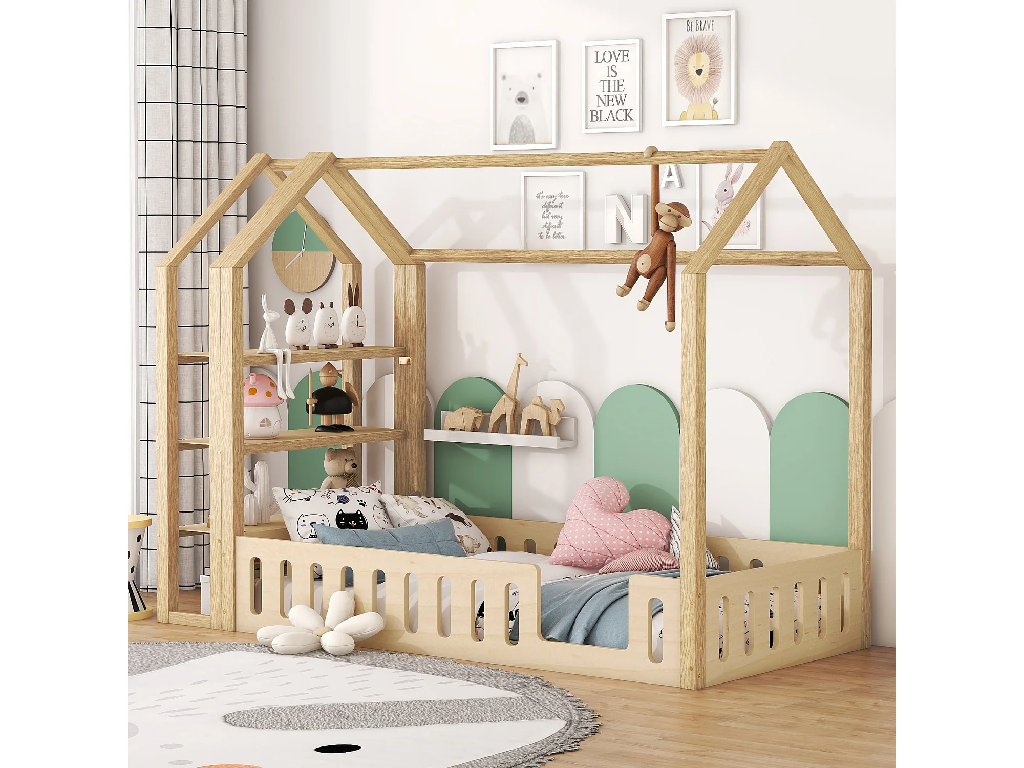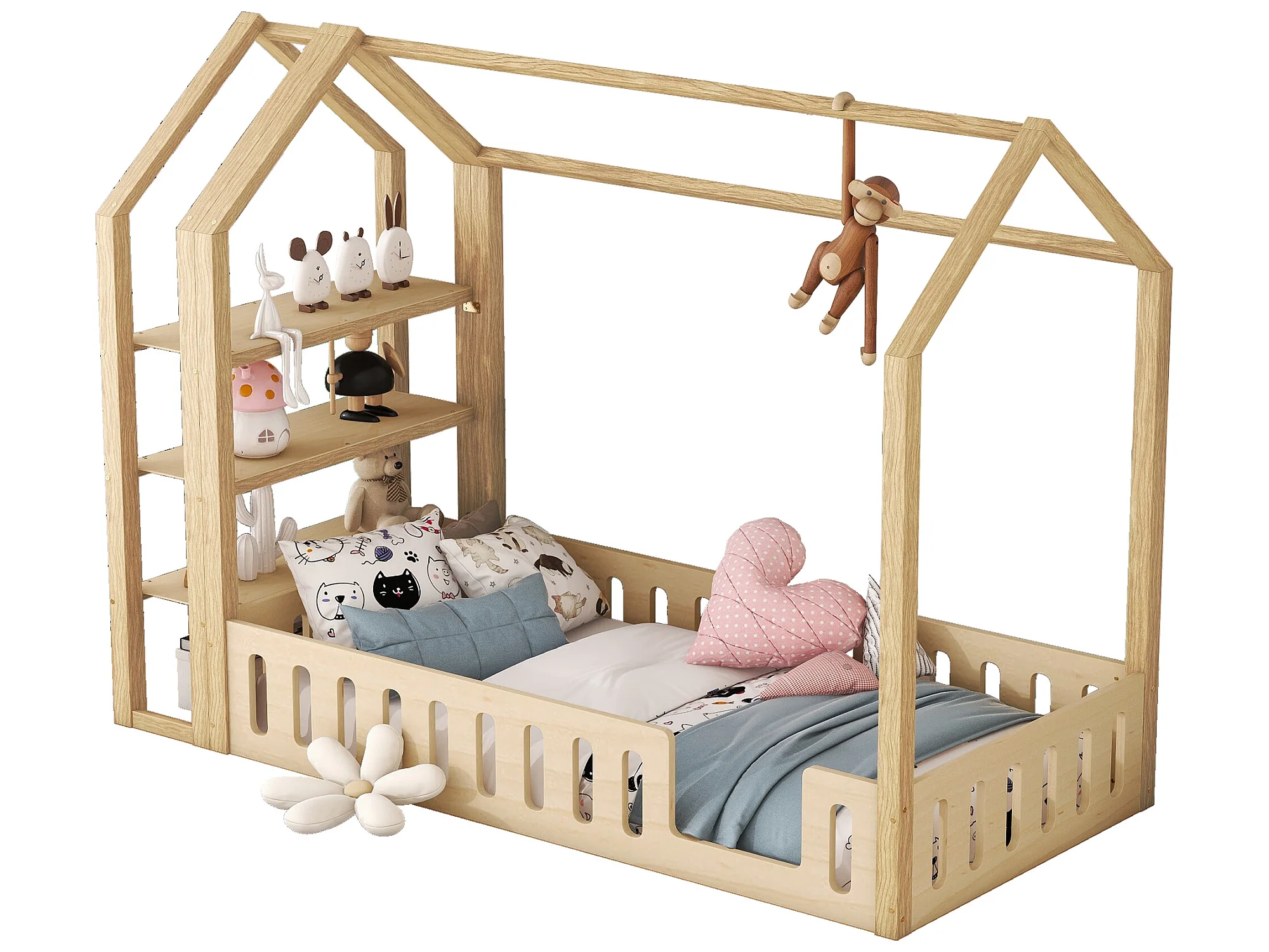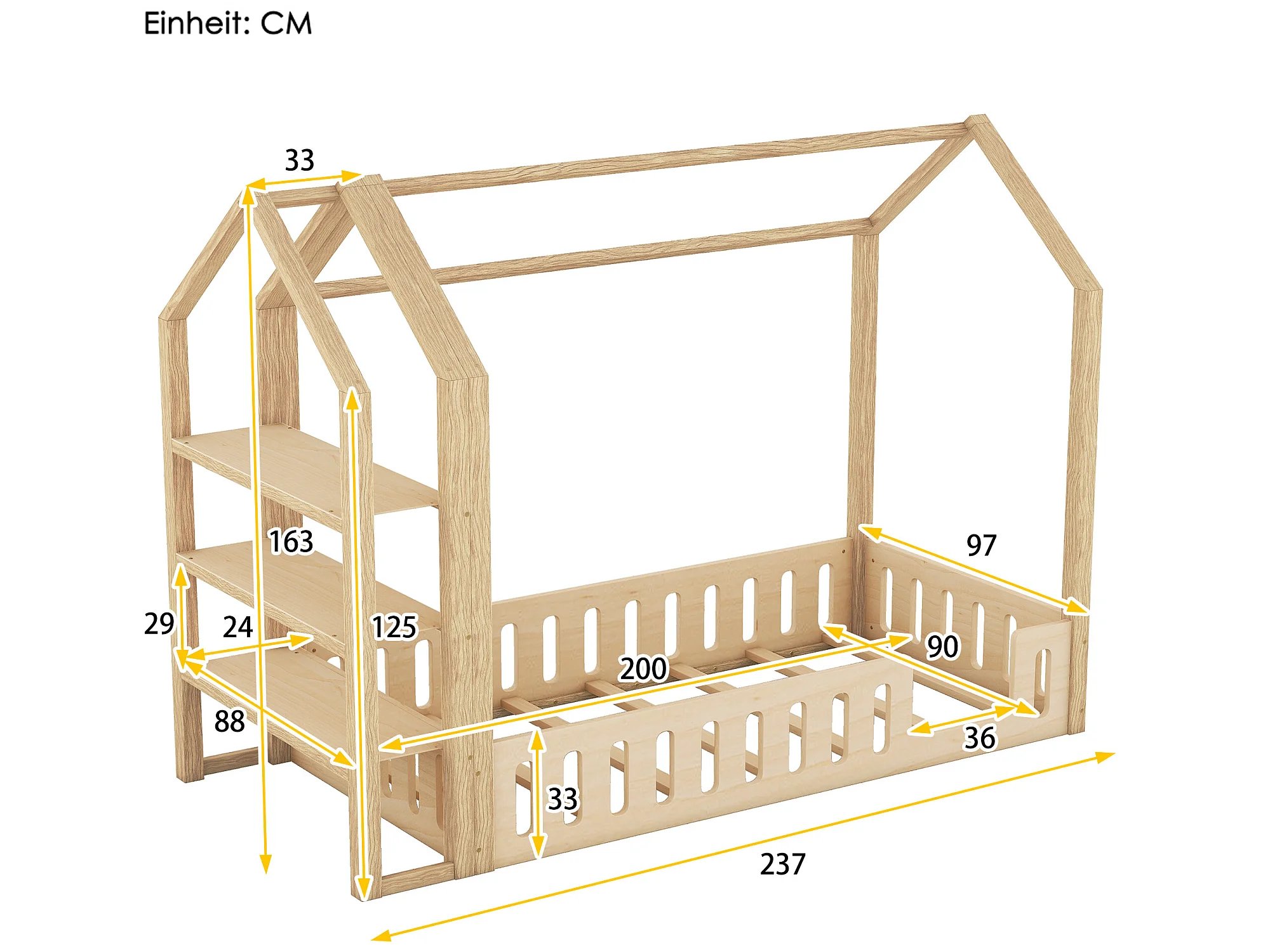 Cabinebed 90 x 200 cm met 3 planken - Grenen en MDF - Naturel