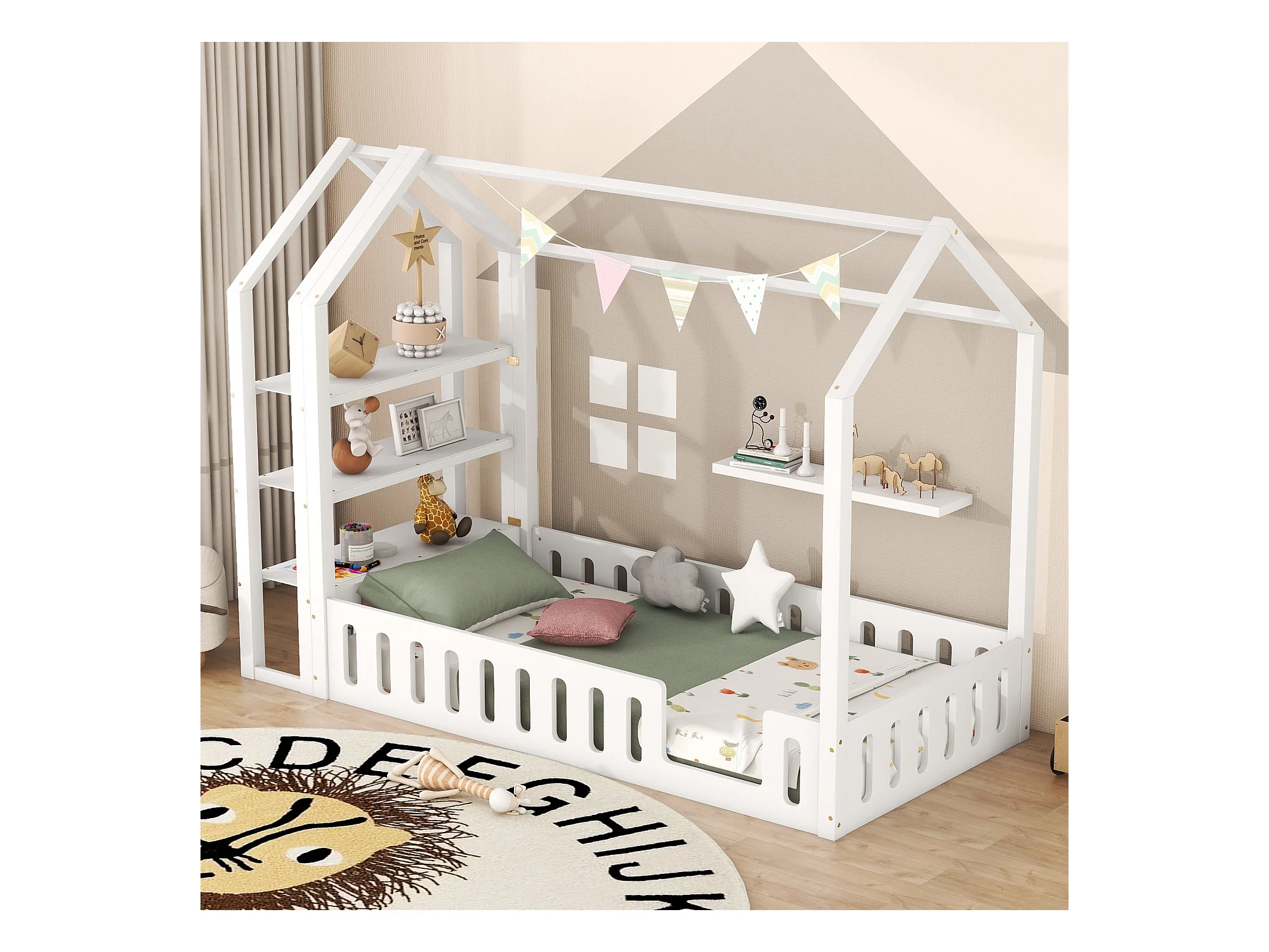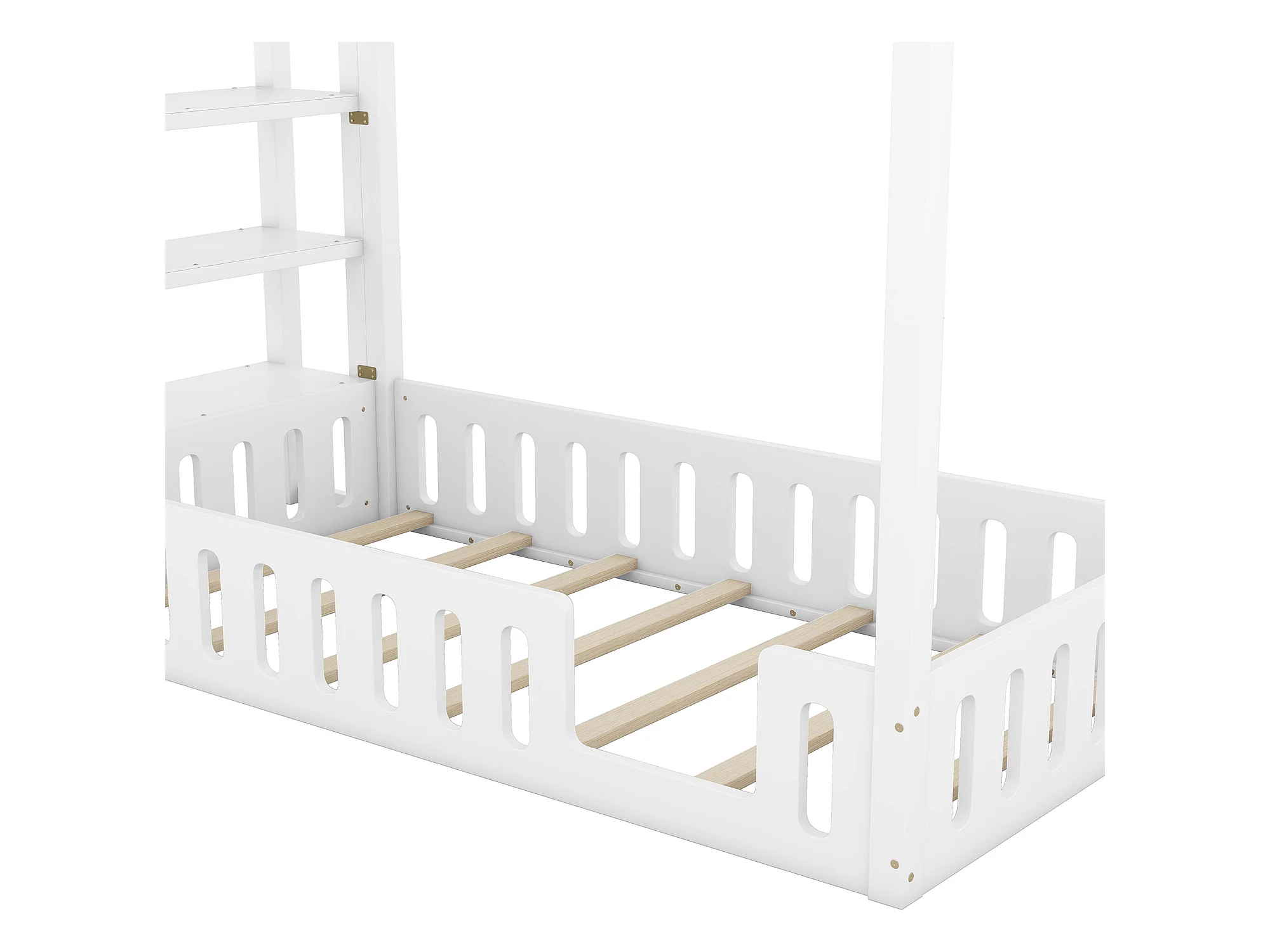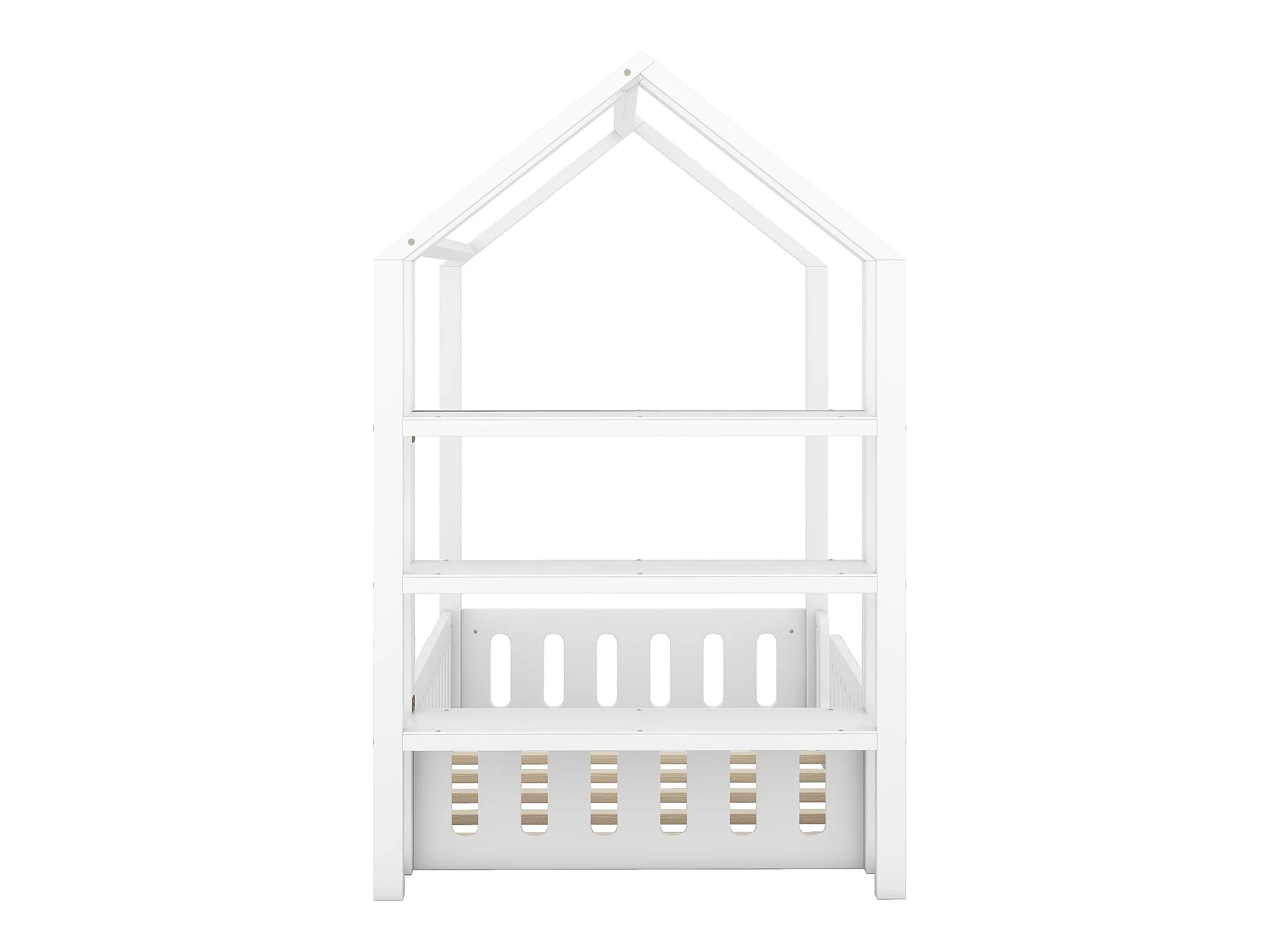 Cabinebed 90 x 200 cm met 3 planken - Grenen en MDF - Wit