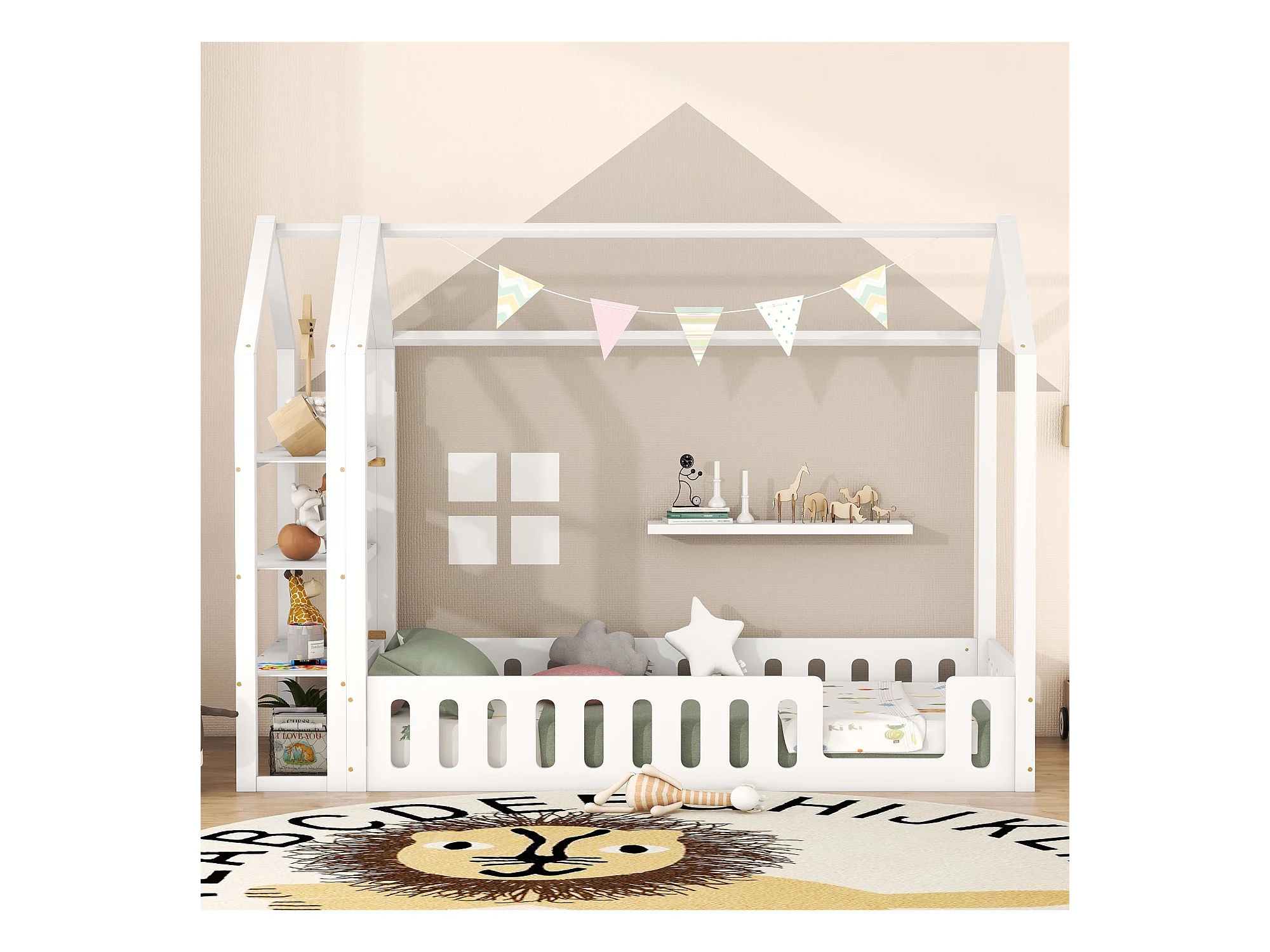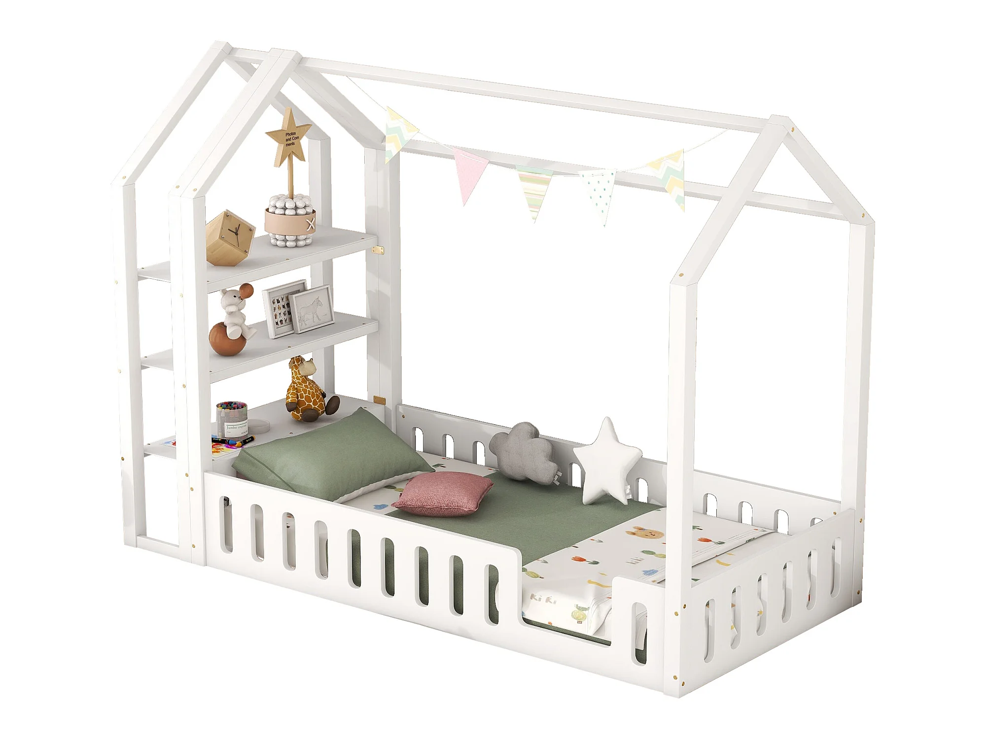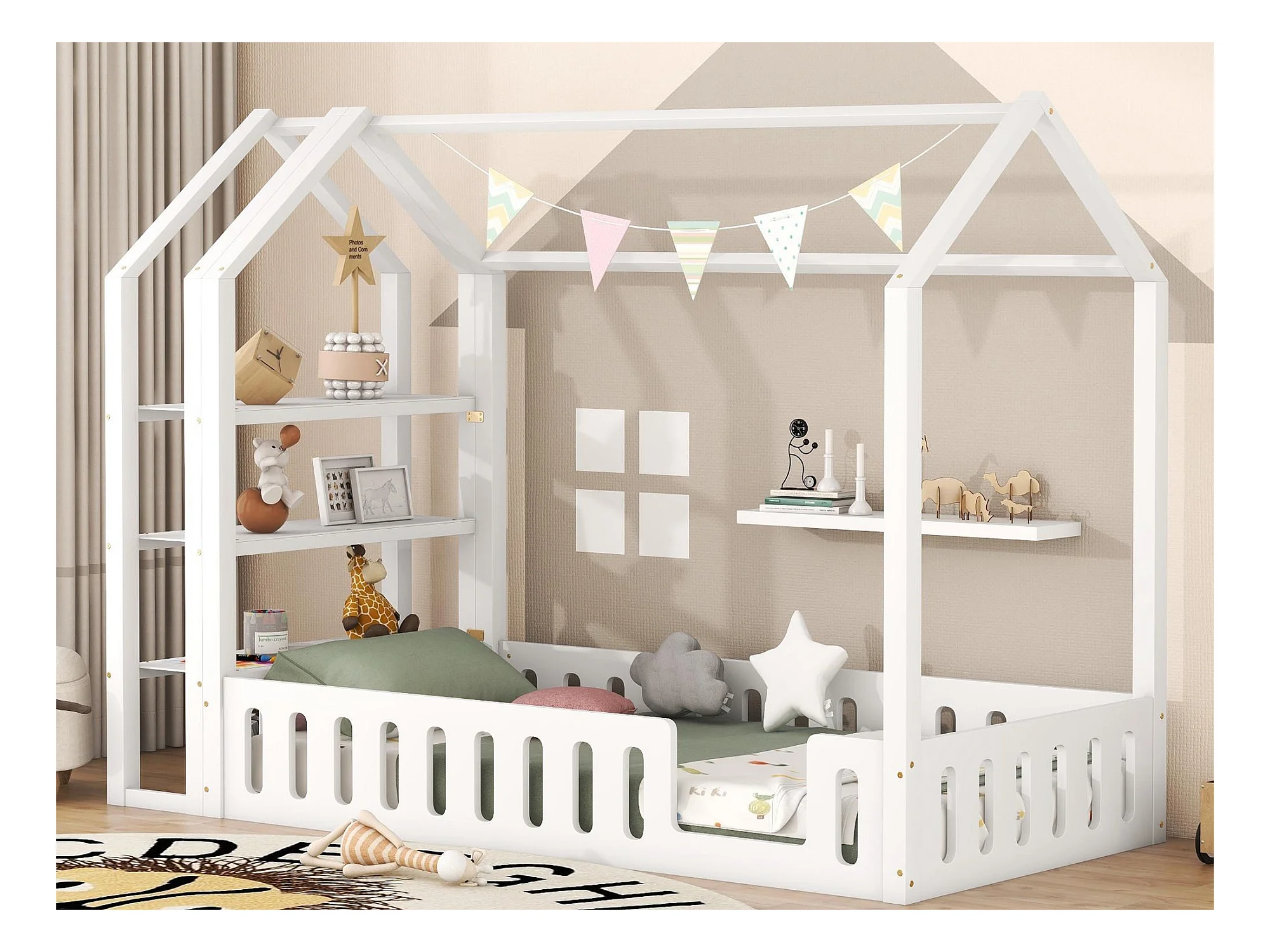 Cabinebed 90 x 200 cm met 3 planken - Grenen en MDF - Wit