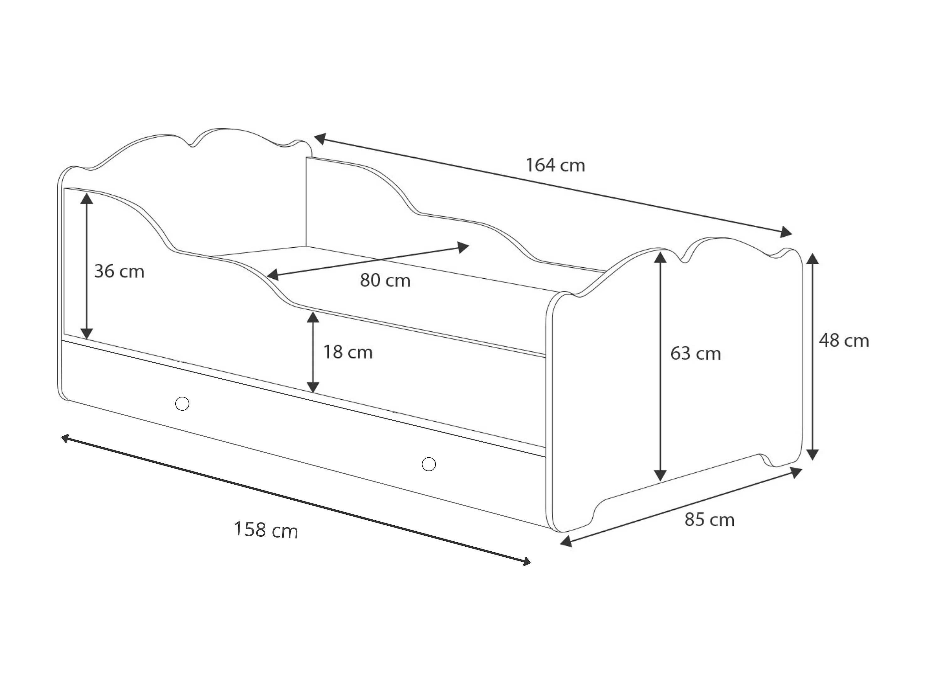 Cama de criança 160 x 80 com gaveta, colchão e estrado incluídos Kobi Anna Princess