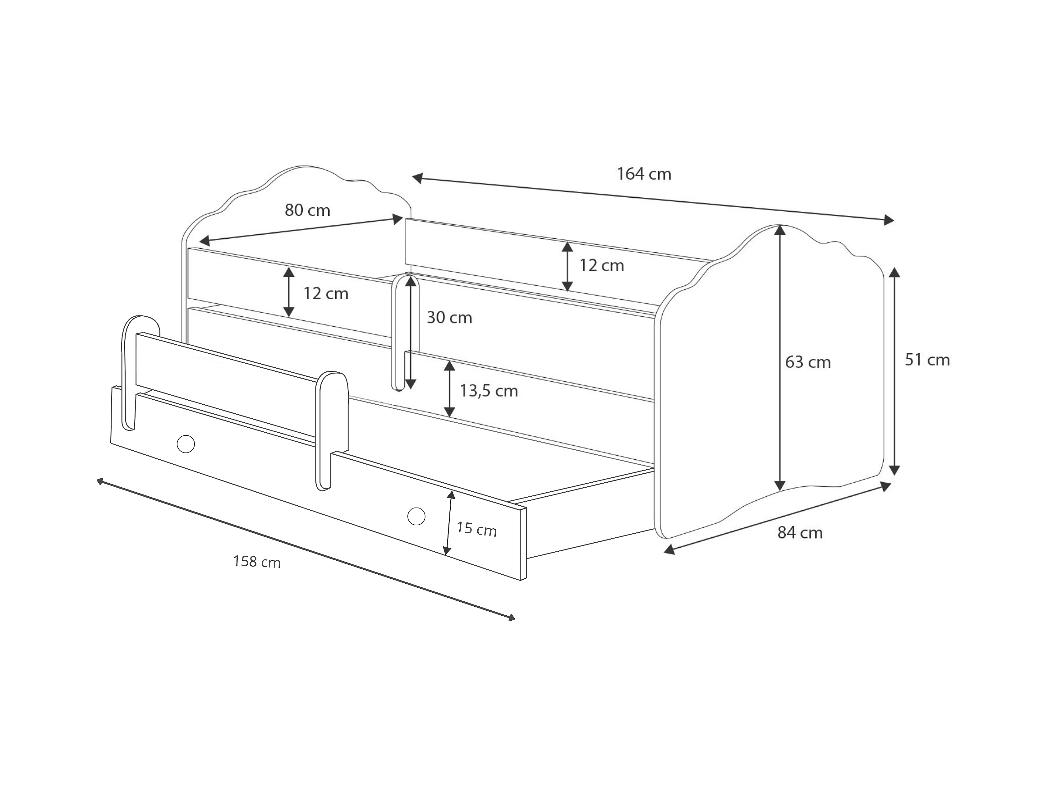 Cama dupla 160 x 80 com colchões e estrados incluídos Kobi Wave Girl with a unicorn