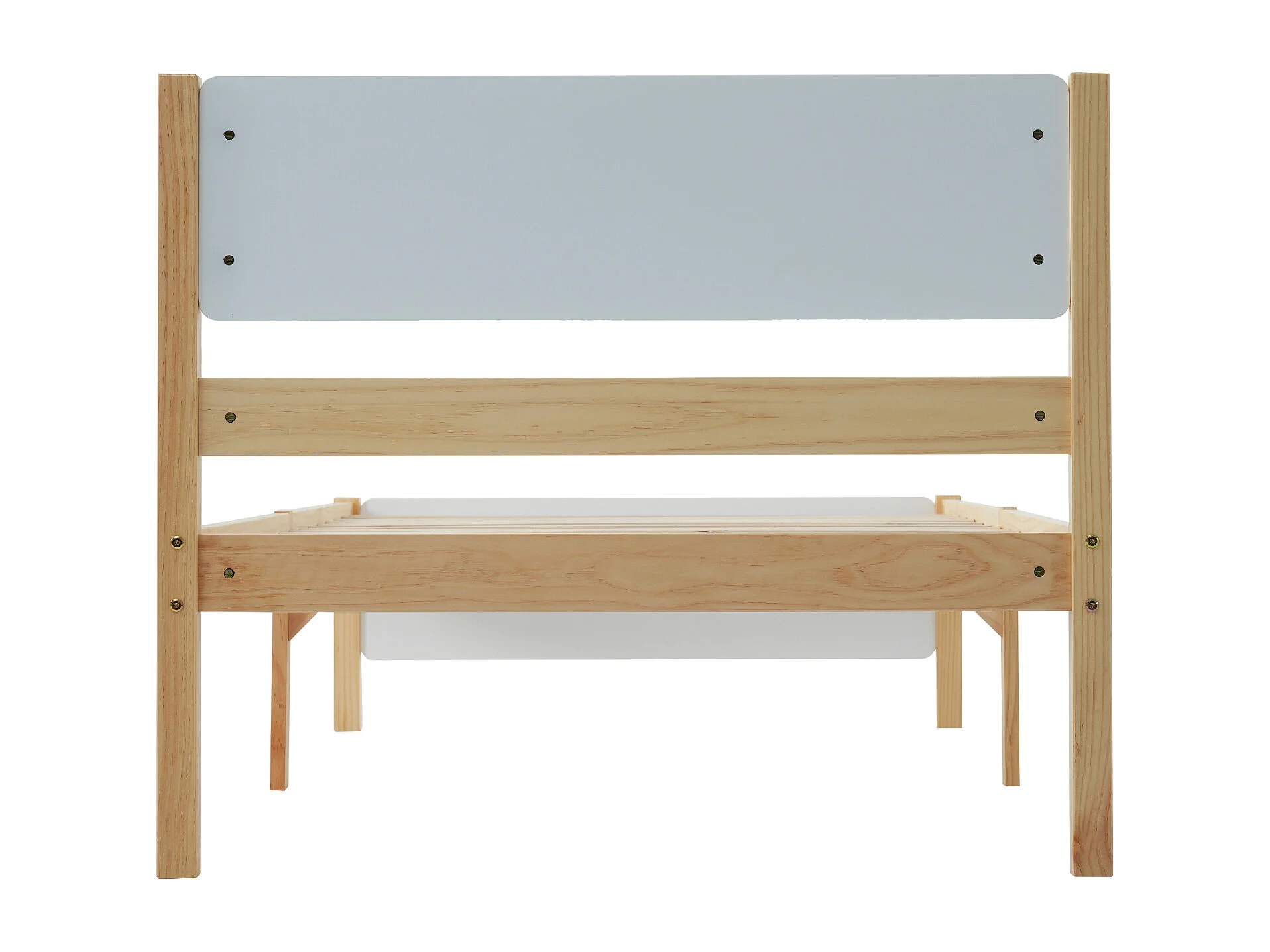 Cama individual de 90x200 cm en pino con pata central de soporte, cabecero y piecero en MDF – Para adolescentes y adultos, acabado blanco y natural