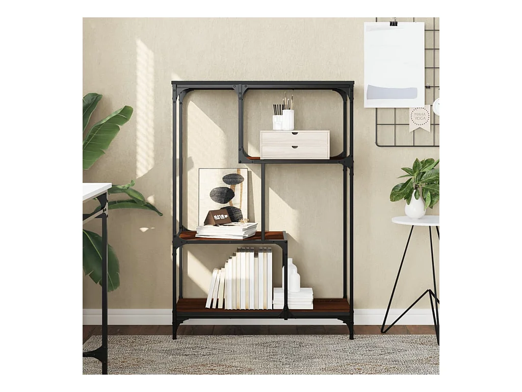 Cameron Boekenkast 81x36x115 cm bewerkt hout en staal bruin eikenkleur