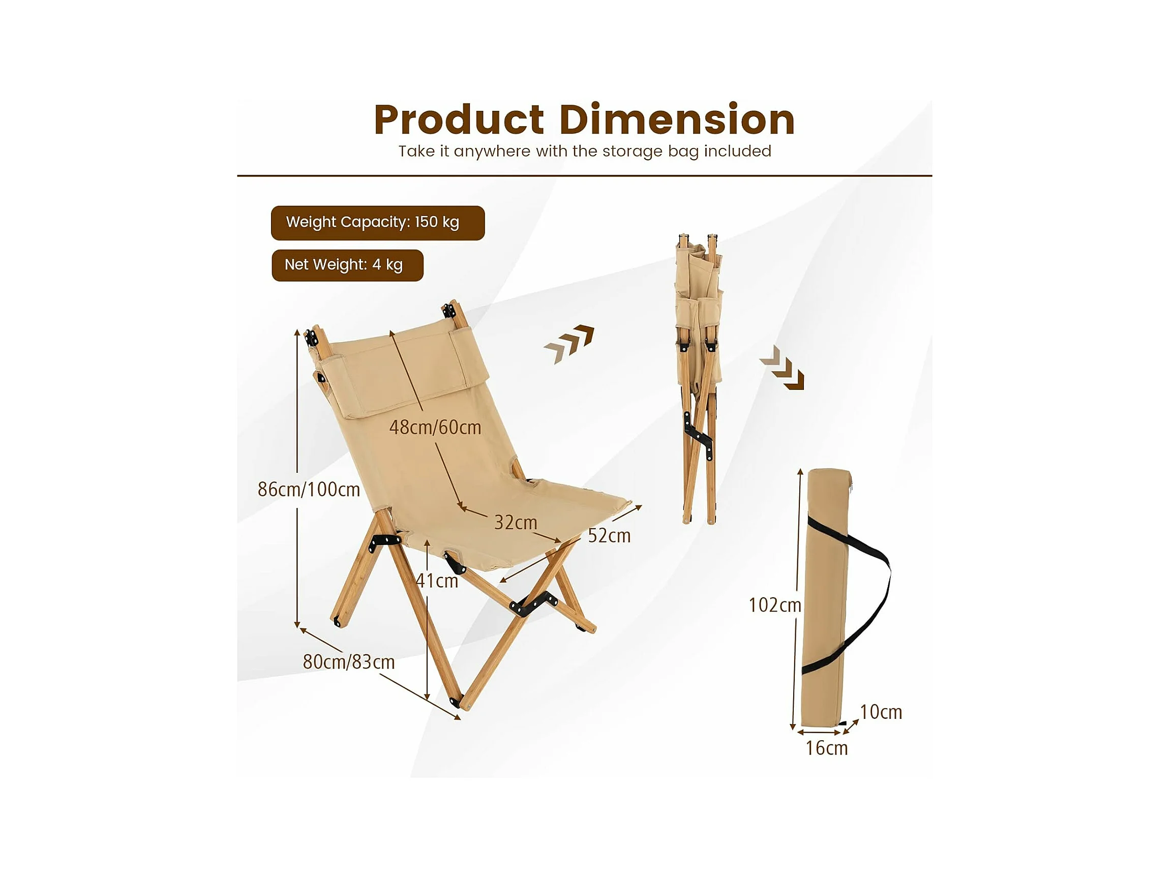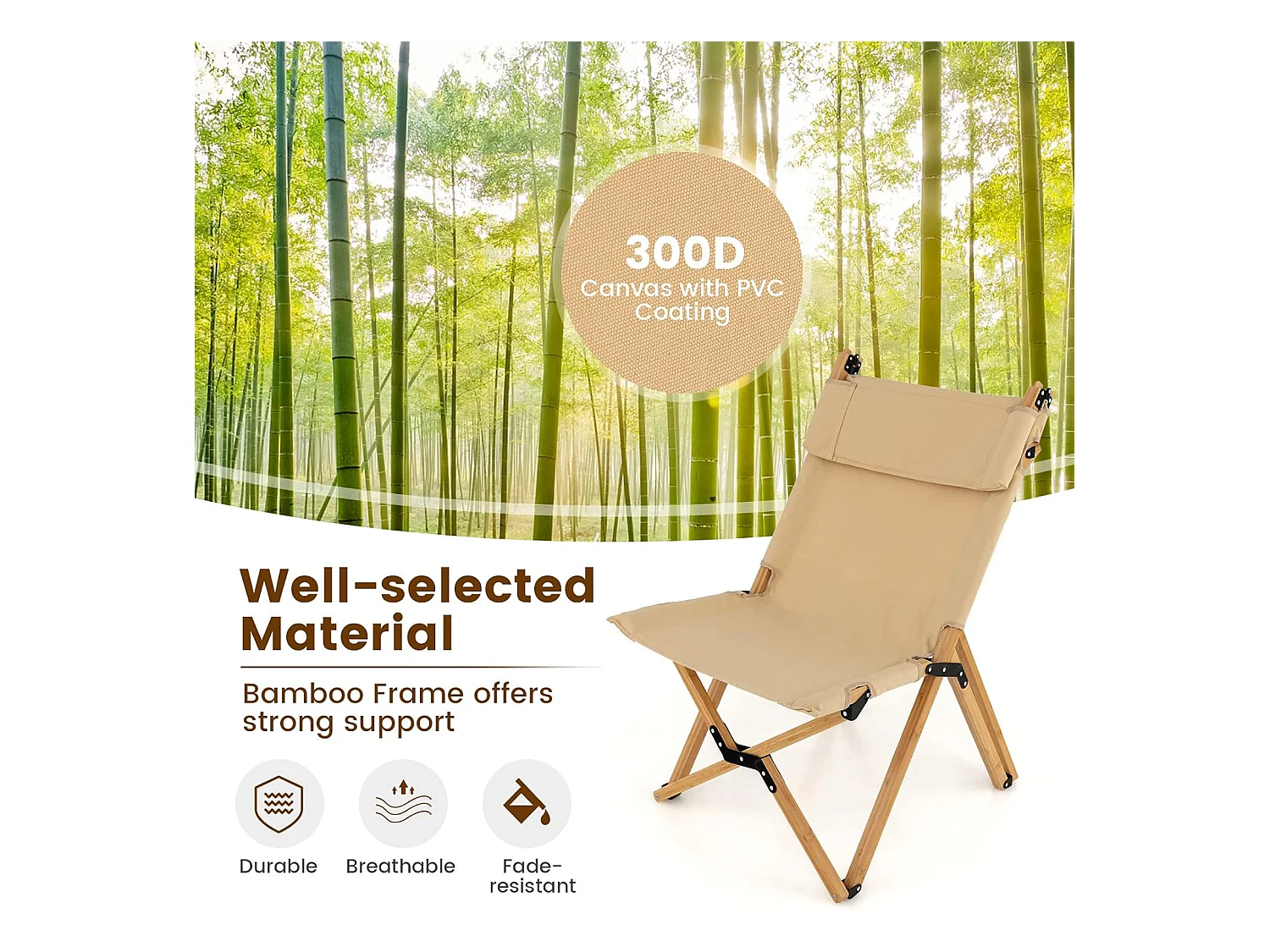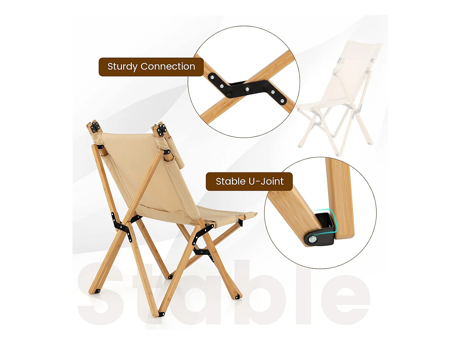 Campingstoel met 2-traps draagbare vouwstoel van bamboe, inclusief draagtas, ultralichte klapstoel, ligstoel, strandstoel voor camping ZB33943