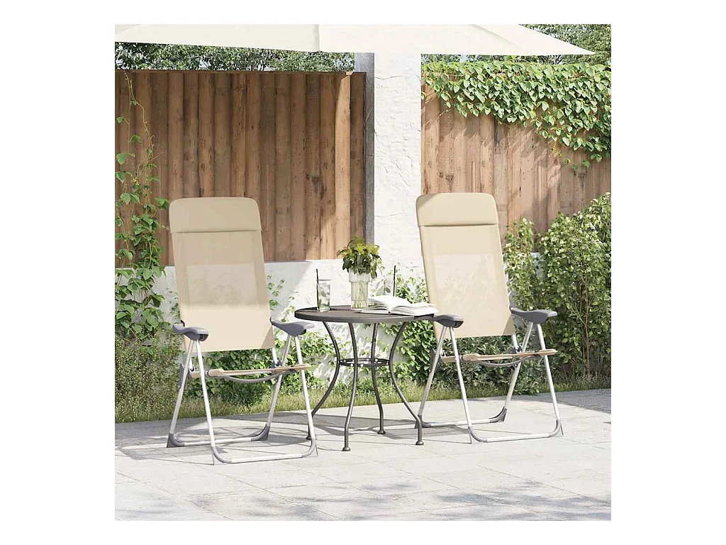 Campingstoelen 2 st inklapbaar aluminium crèmewit