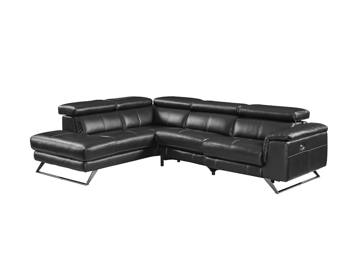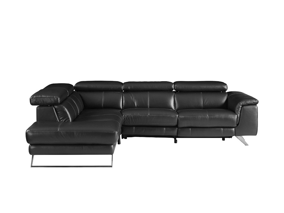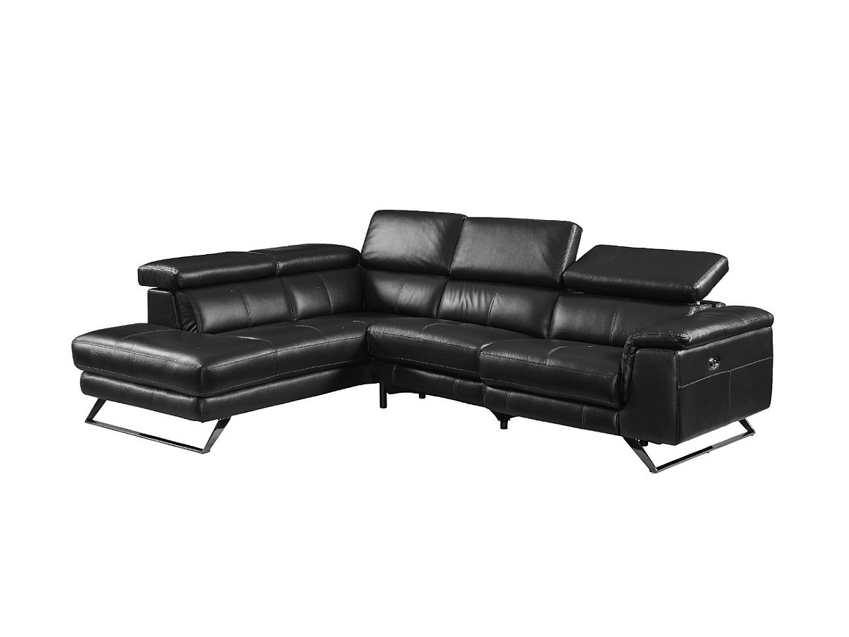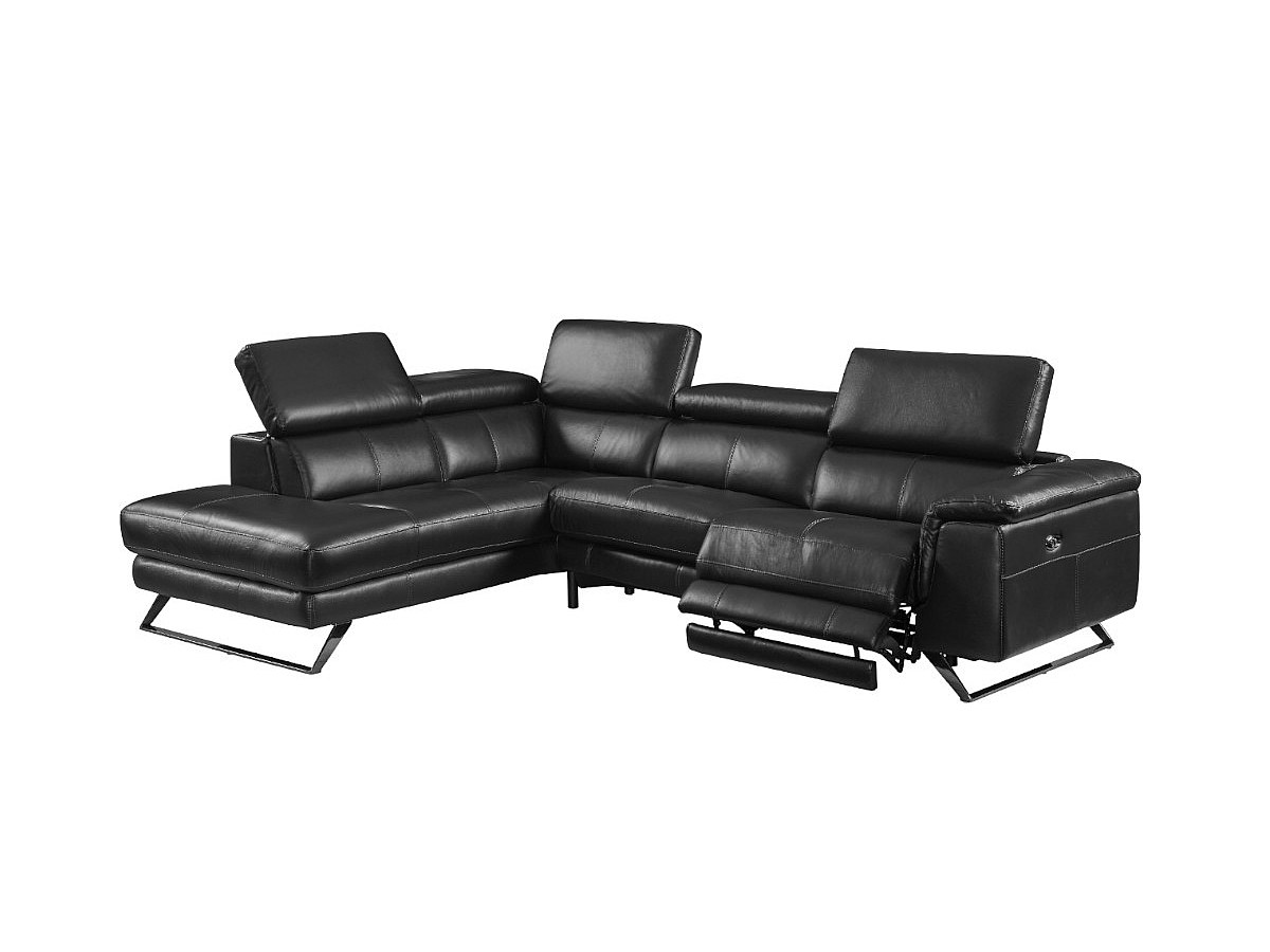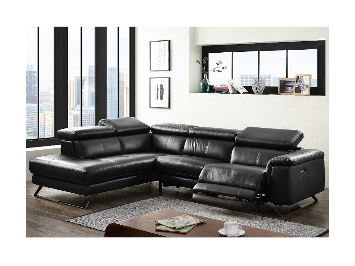 Elektrische relaxhoekbank leer BREYT - Zwart – Hoek links