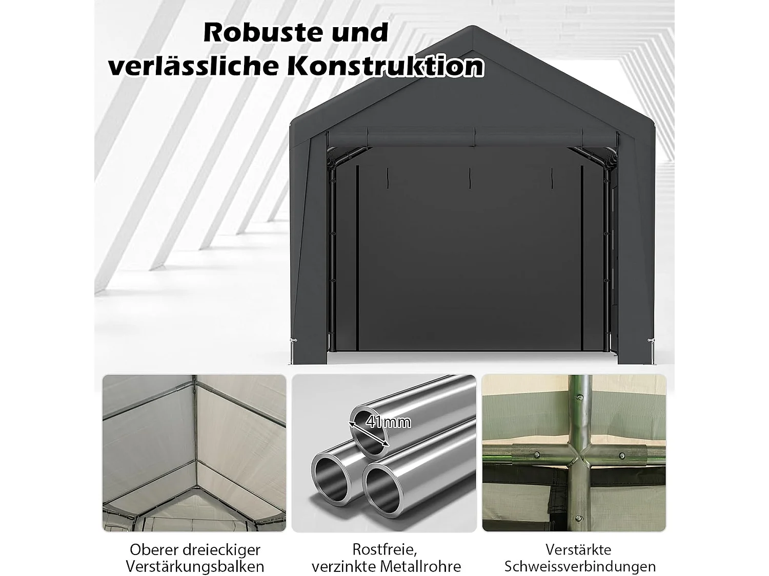 Garagetent carport, 490 x 290 x 245 cm, tentgarage met deuren, weidetent, opslagtent, garage, autoschuilplaats voor SUV, boot,vracht,ZB32807