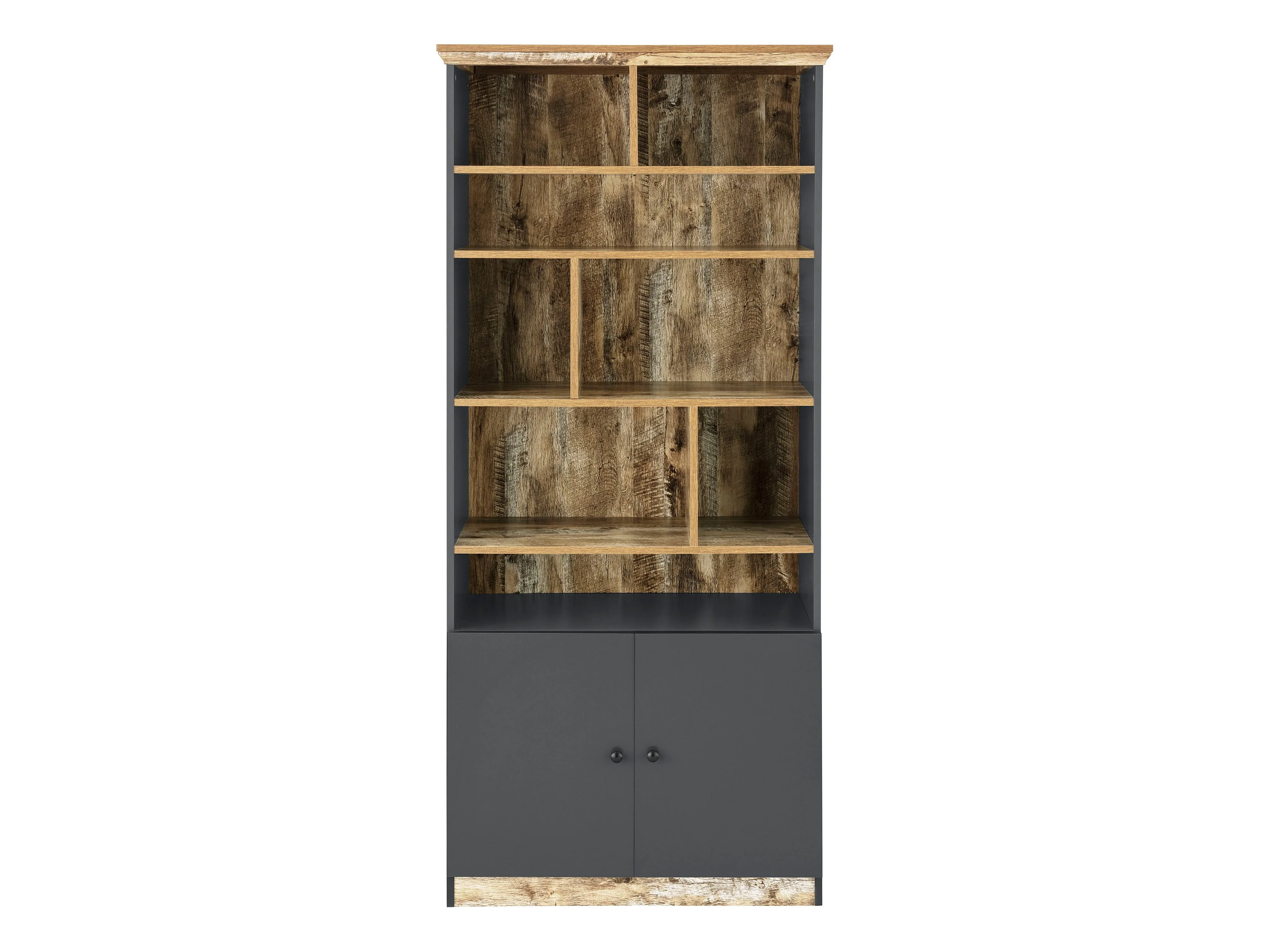 Abel Wood en grijze 3-deurs boekenkast met 2 lades