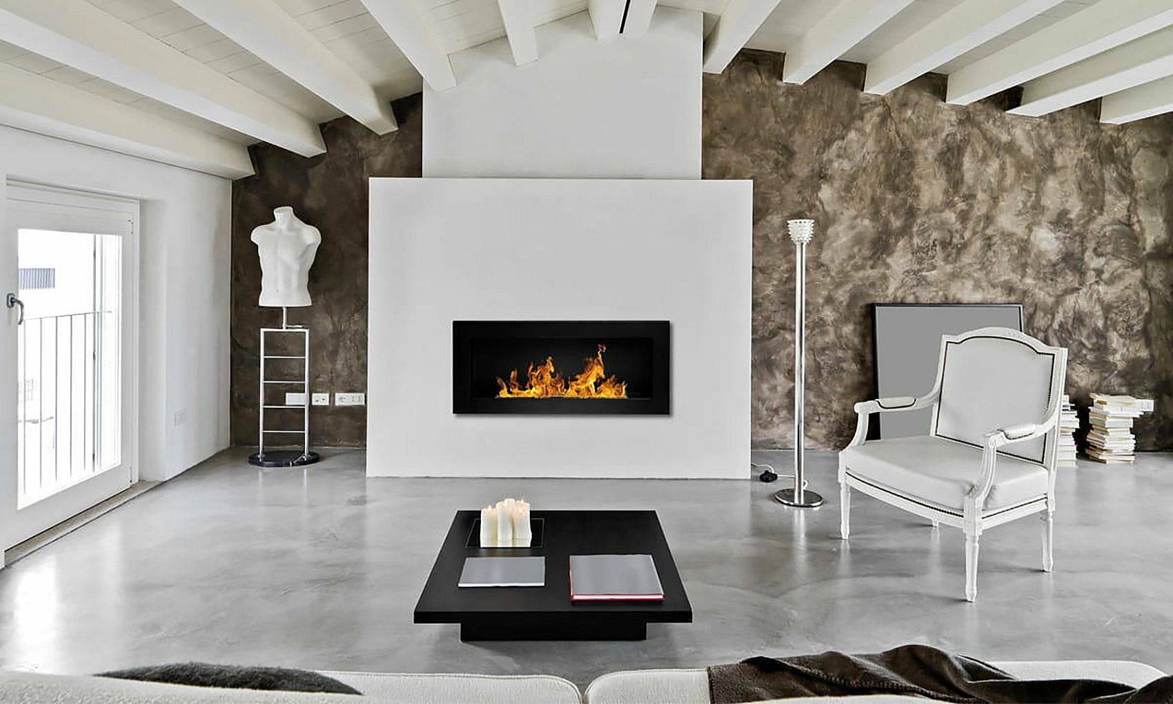 Cayambe bio-ethanol haard, Ecologische haard, Rookloze haard, Ethanol verwarming, Made in Italy, 90x12 h39 cm, Zwart