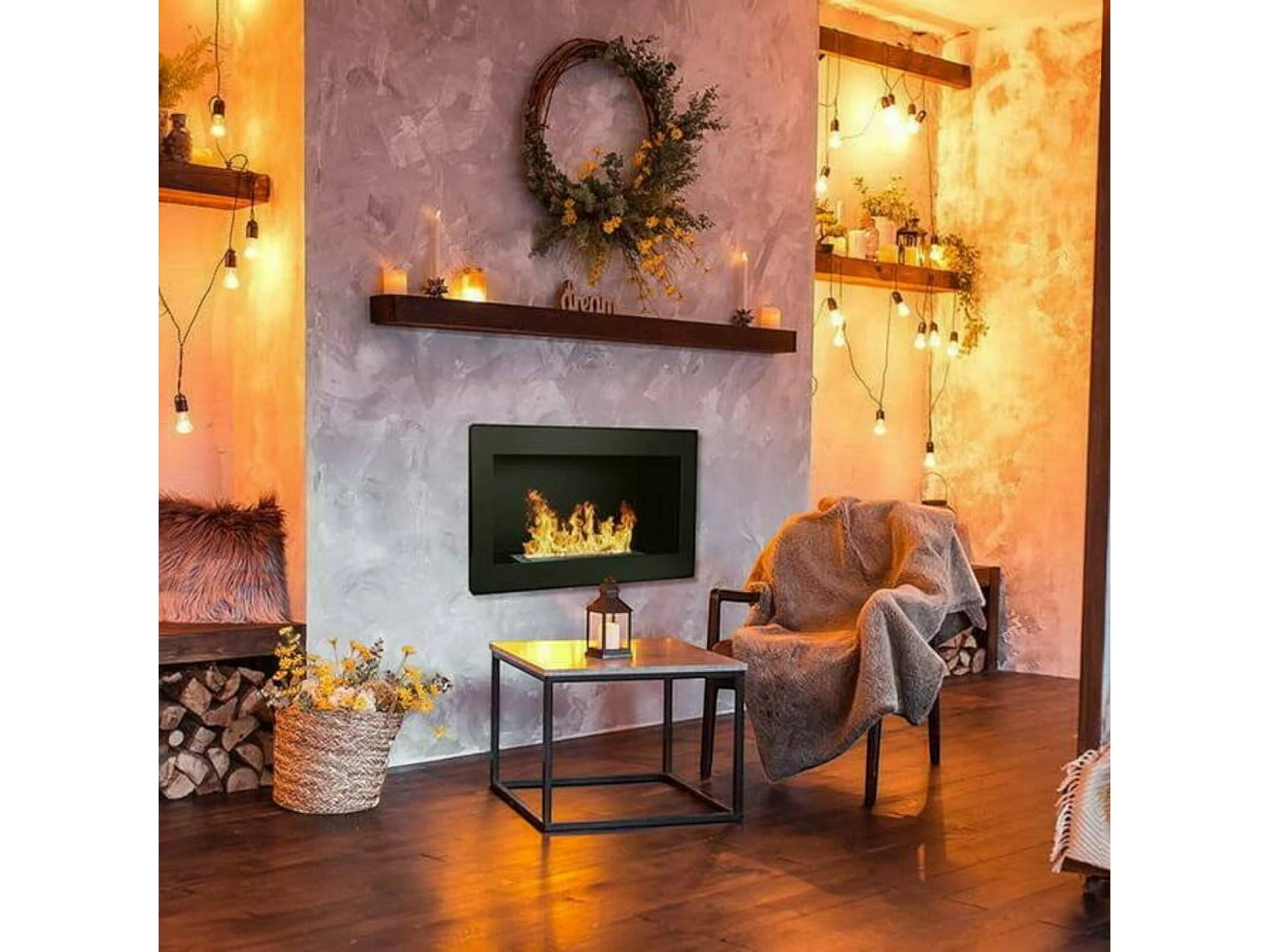 Pichincha bio-ethanol haard, Ecologische haard, Rookloze haard, Ethanolverwarmer, Made in Italy, 12x90 h40 cm, Zwart