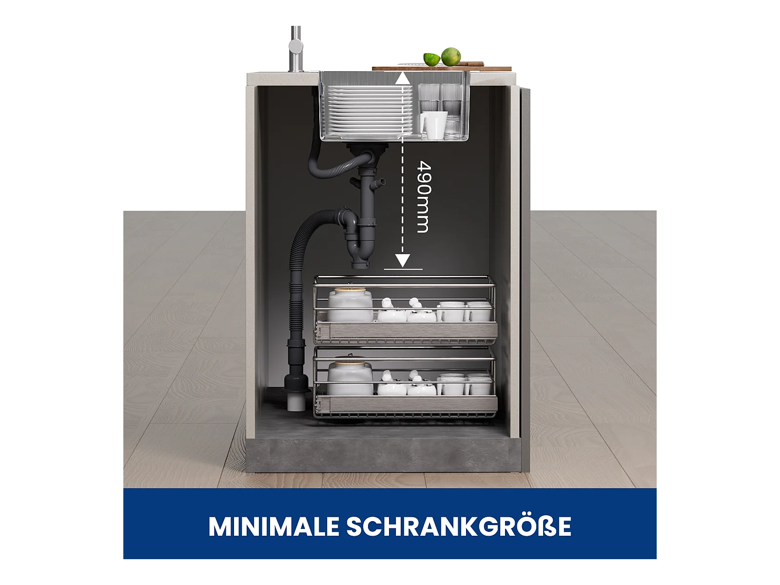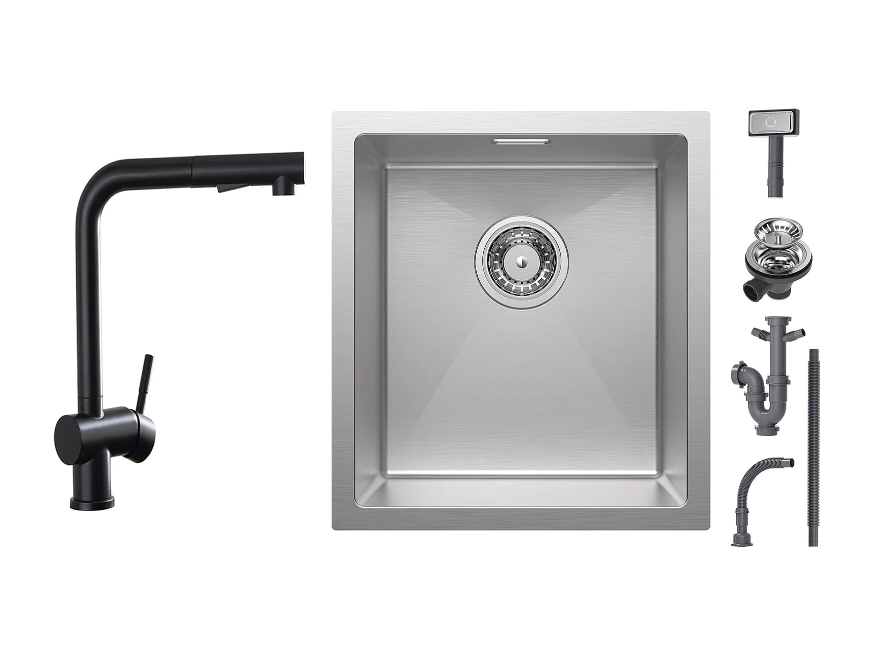 Cecipa max 1 spoelbak 40x44cm - spoelbak van geborsteld roestvrij staal + keukenkranen met uittrekbare straal, spoelbakmengkraan 2 straalmodi