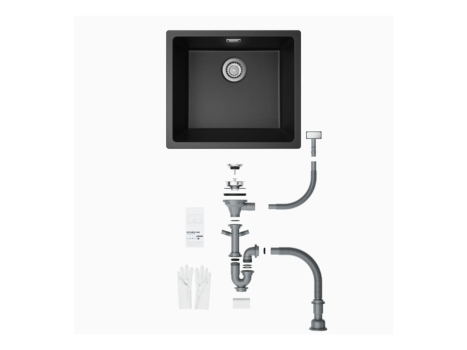 CECIPA MAX 1 spoelbak in kwarts en hars, aanrecht in zwartgrijs graniet, kwartsspoelbak 3 montagemogelijkheden, 50*44*20cm