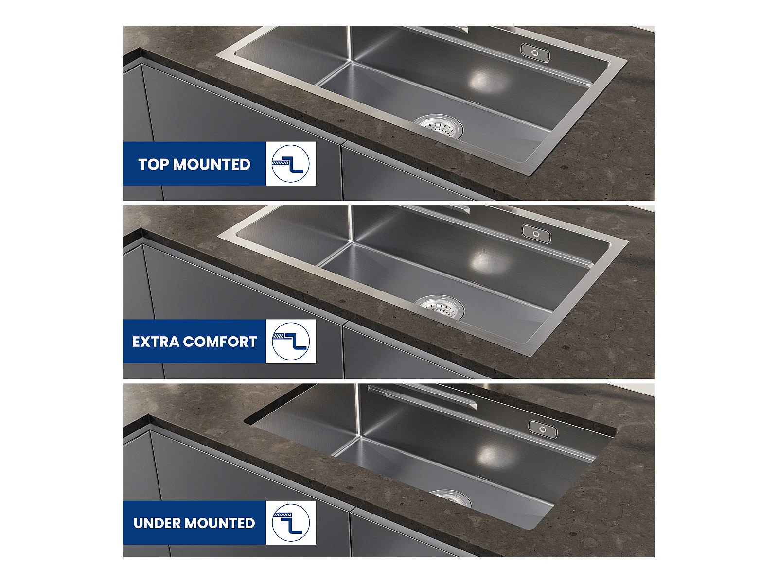 Cecipa max 1 wastafel 70×44cm Geborsteld roestvrij staal Ingebouwde spoelbak met afdruiprek en wastafel + mengkraan met uittrekbare spray, 3 waterafvoermodi