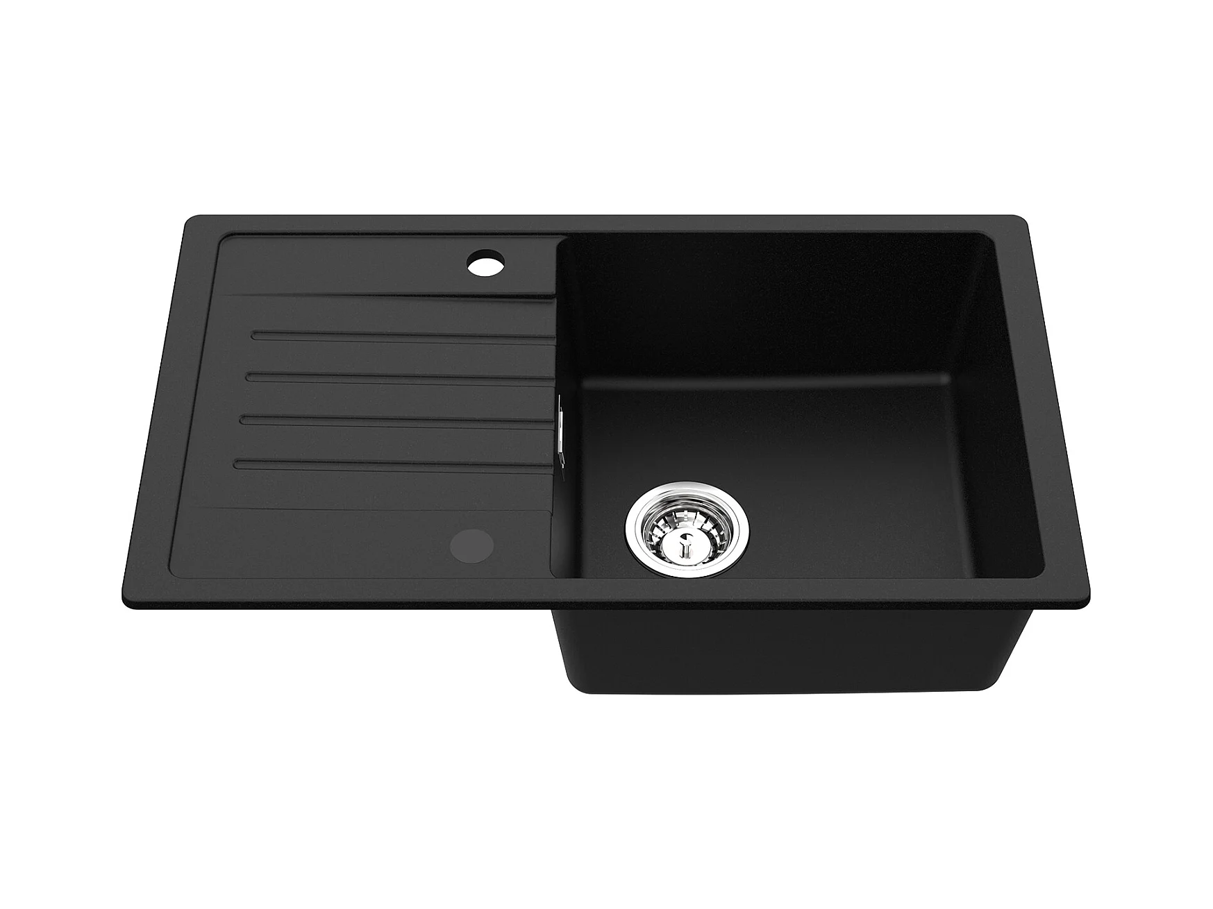 Cecipa max 1 wastafel in kwarts en hars - ingebouwde spoelbak met afdruiprek - 78x45cm 1 wastafel zwart granieten aanrecht, EU-model