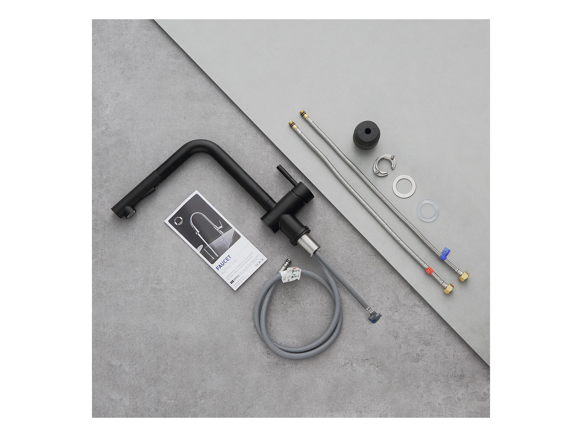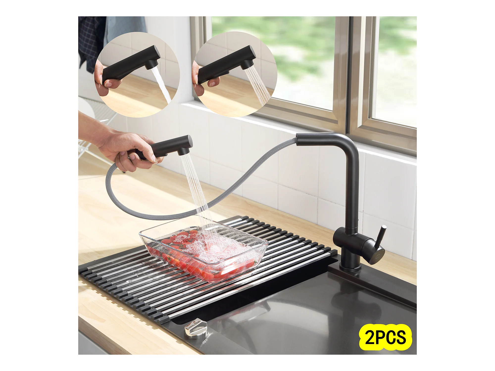 Cecipa max 2PCS zwarte aanrechtmengkraan met uittrekbare spray - 2 spuitmodi - roestvrijstalen keukenkranen, EU-model