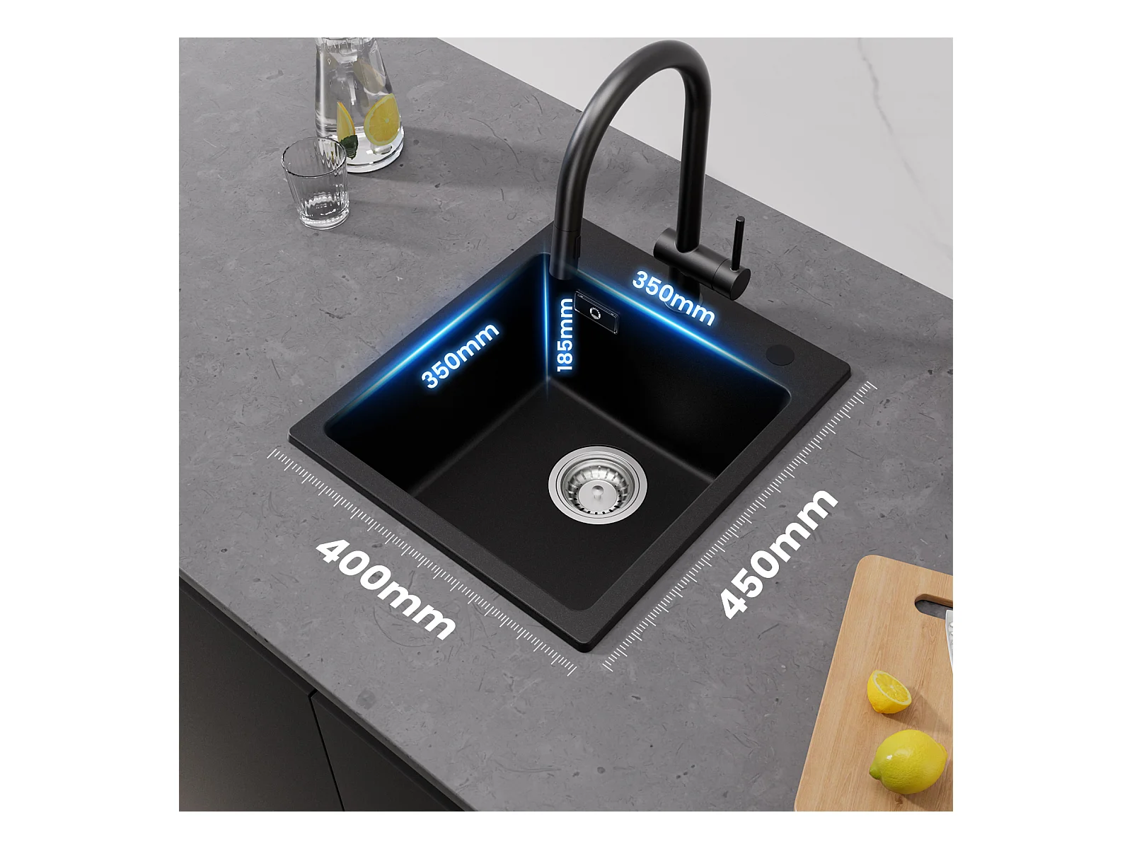 Cecipa max Quartz spoelbak + zeepdispenser, 1 kom Quartz spoelbak Zwart granieten spoelbak, ingebouwde spoelbak (40x45x20cm)