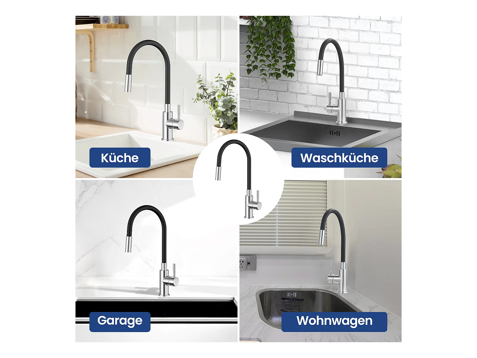 Cecipa max flexibele keukenkraan met 2 straalsoorten, opvouwbare mengkraan, flexibele mengkraan met warm en koud water (zwart + geborsteld), EU-model