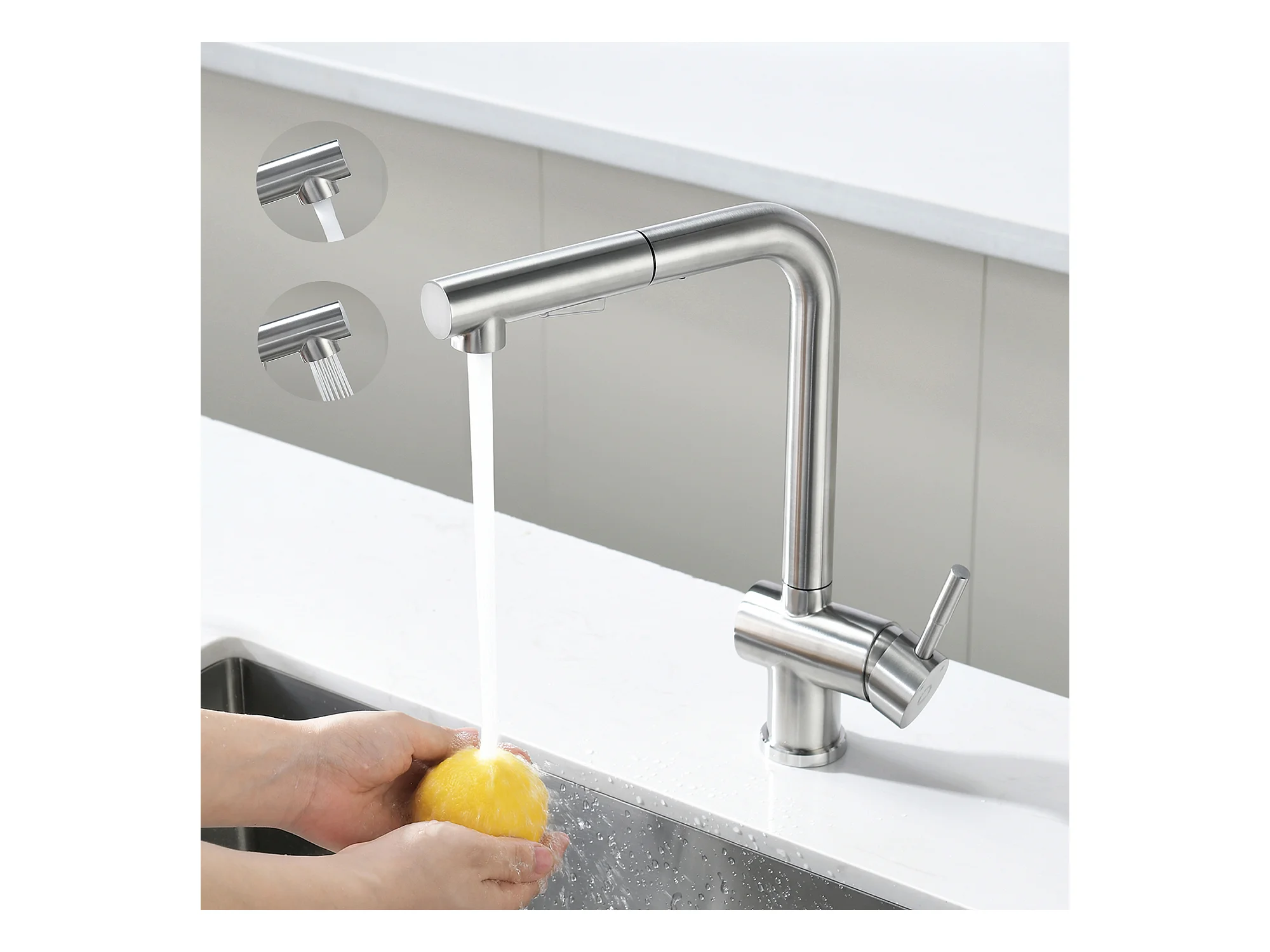 Geborstelde uittrekbare keukenmengkraan,304 roestvrij staal, gootsteenmengkraan 2 modi warm/koud waterstralen, telescopische kraan voor groentegootsteen