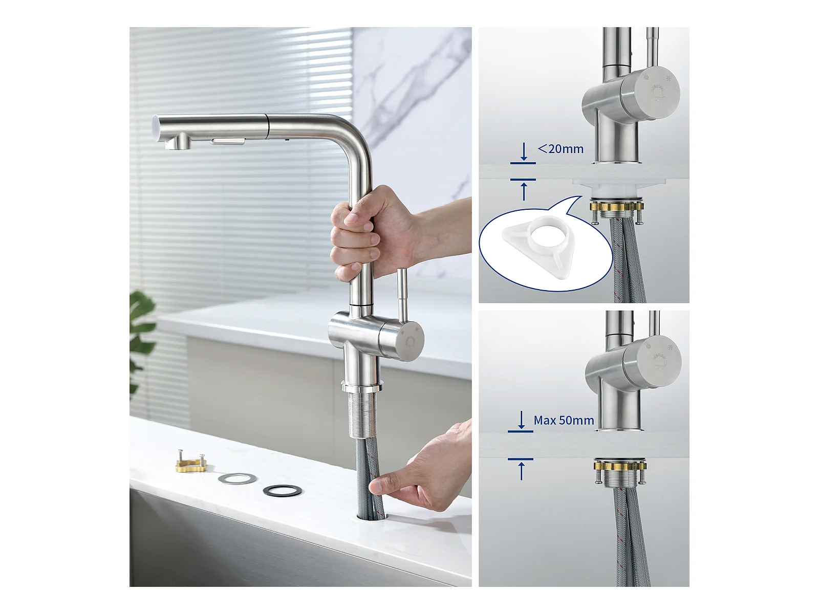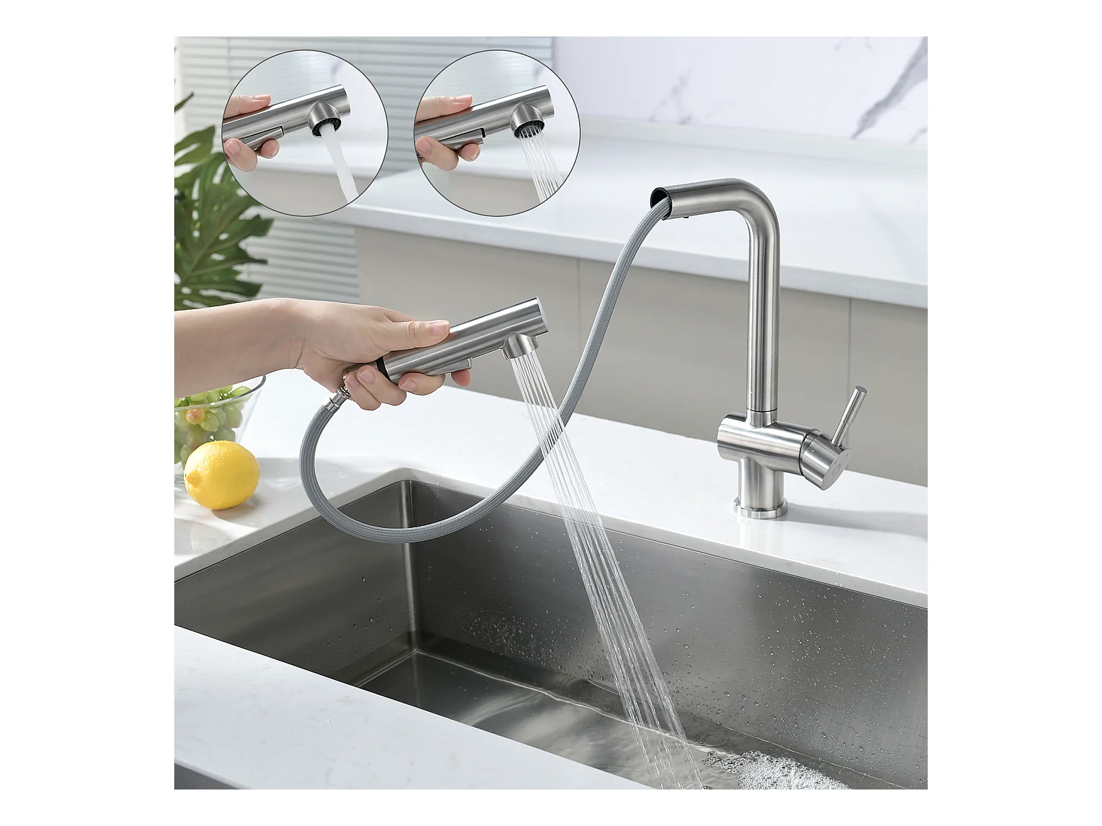 Cecipa max Geborstelde Keukenmengkraan met Sproeikraan Uittrekbare Spoelbak met Twee Jets Spoelbakmengkraan met Afneembare Bubbler, EU-model