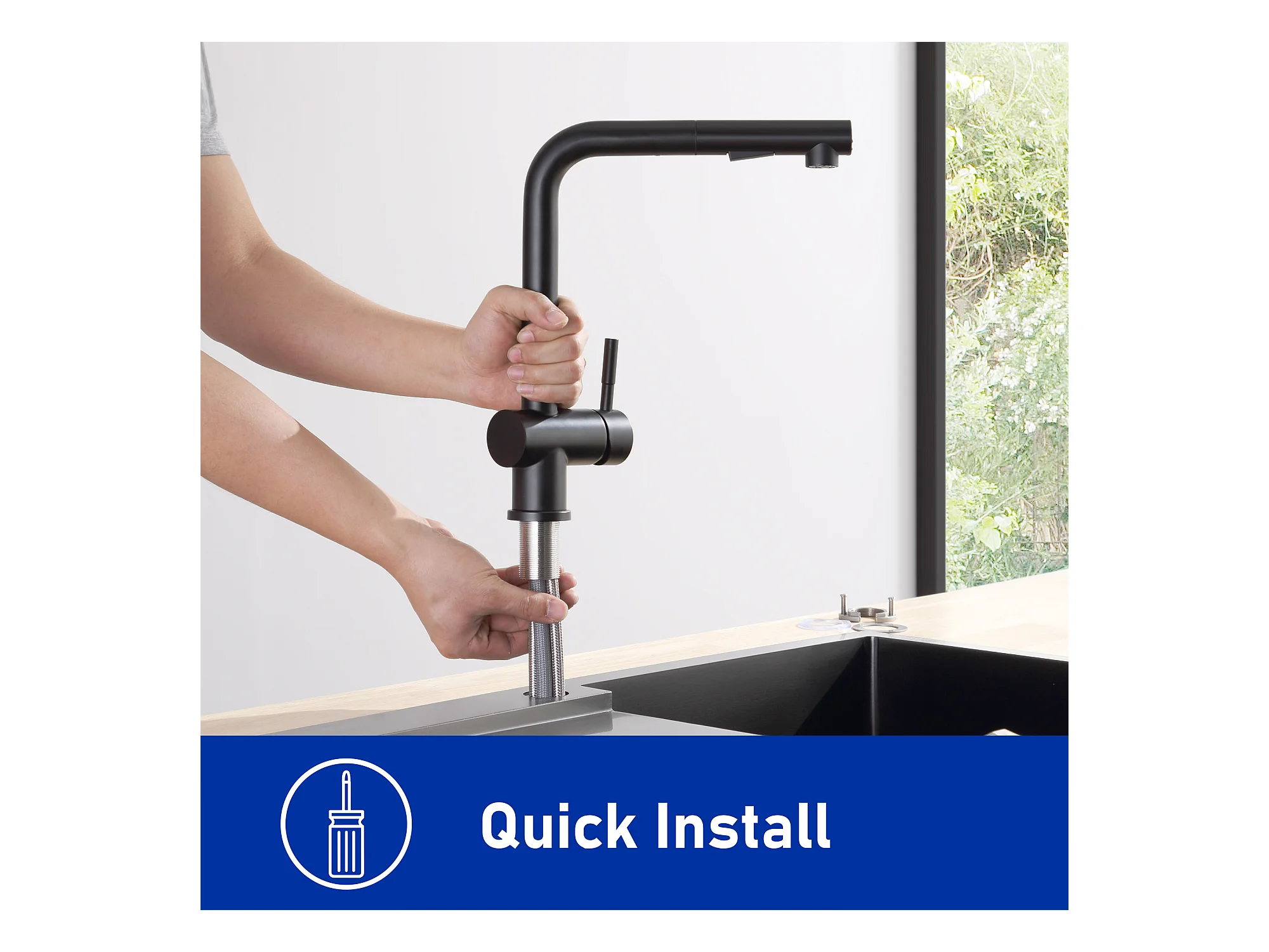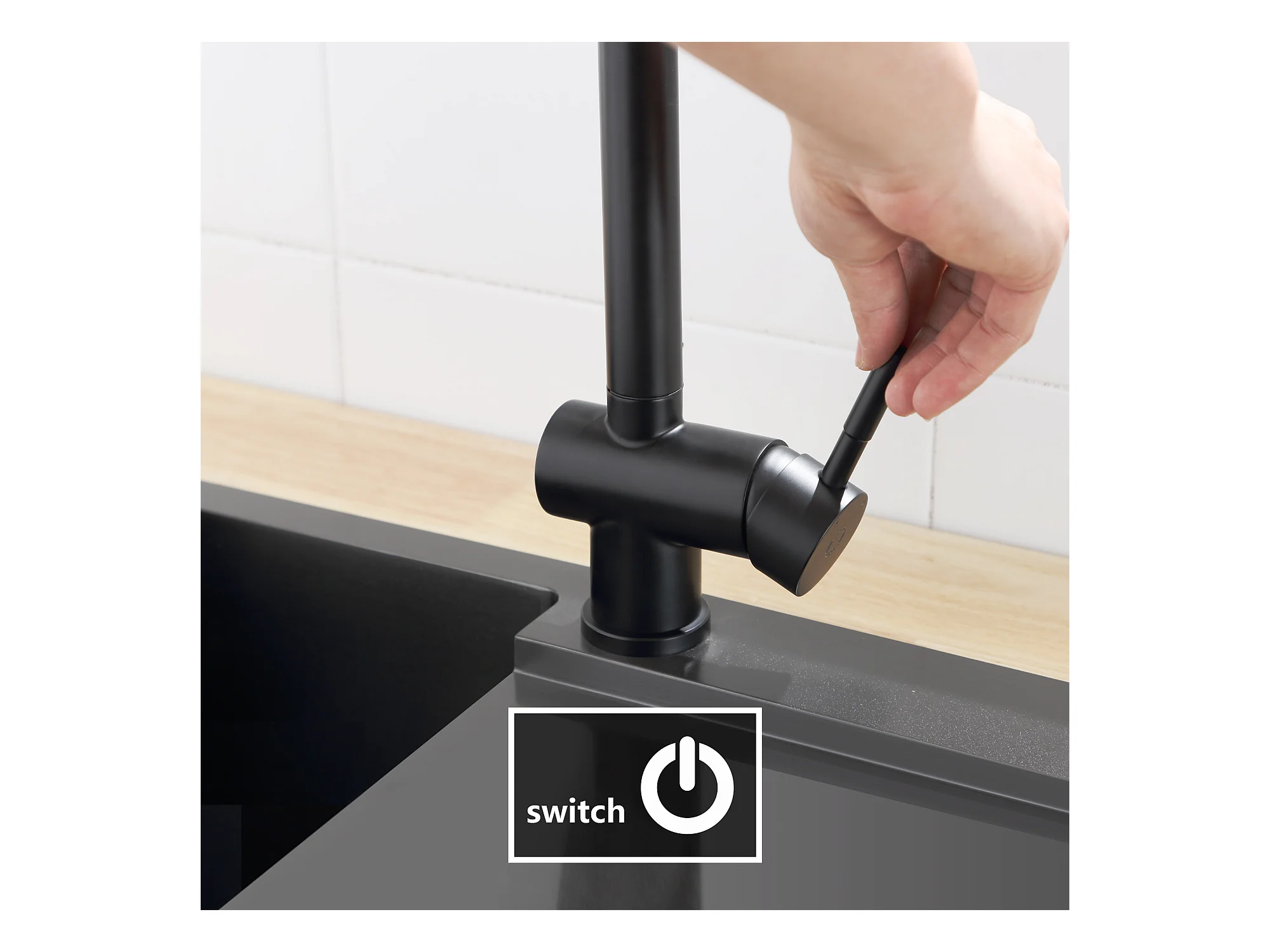 AuraLum MaxKeukenkraan keukenmengkraan met uittrekbare handdouche, keukengootsteenmengkraan 2 standen 360 graden draaibare jets Zwart, EU Model