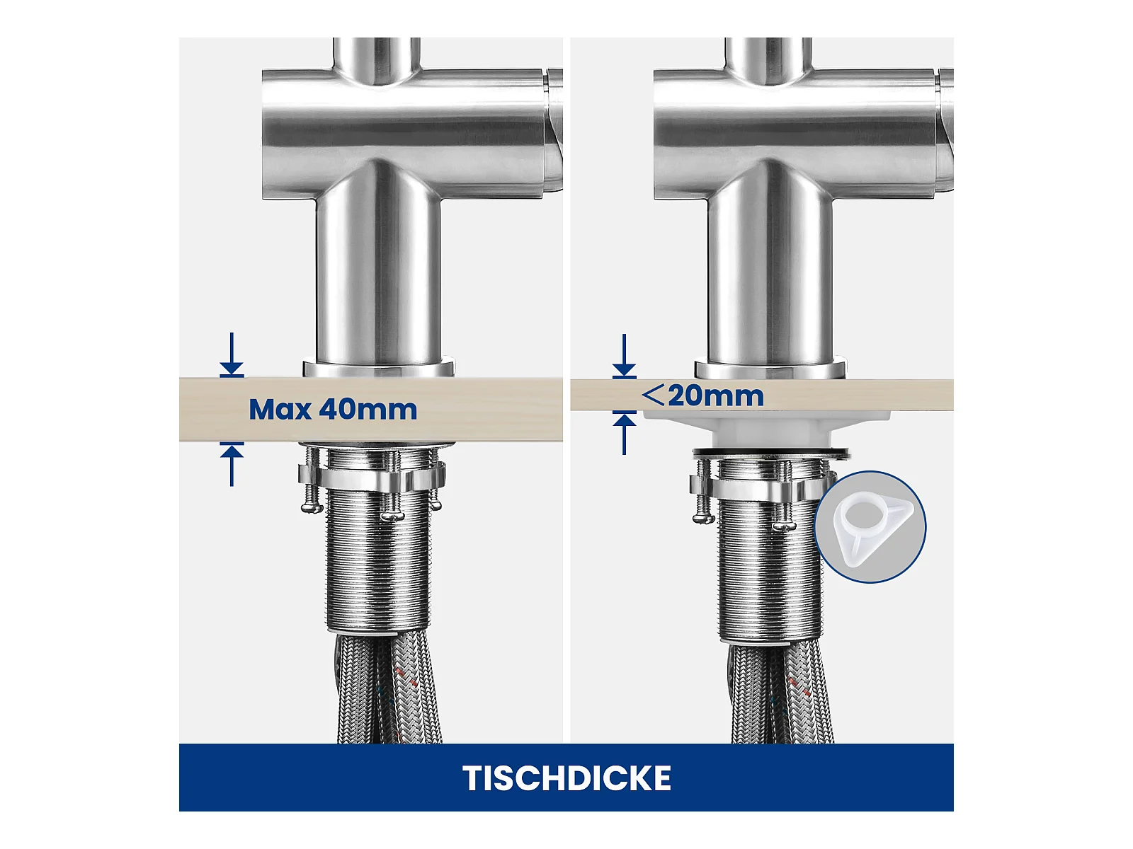 AuraLum Max Spiraalveer Keukenmengkraan met 2 Handdouchefuncties 360° Draaibare gootsteenkraan van 304 roestvrij staal voor keuken, geborsteld, EU-model