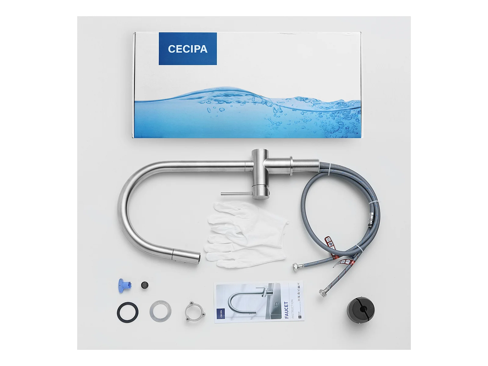 2PCS CECIPA MAX Keukenmengkraan met uittrekbare spray Keukenkraan met 2 soorten watersproeiers Geborsteld roestvrij staal Wastafelkraan