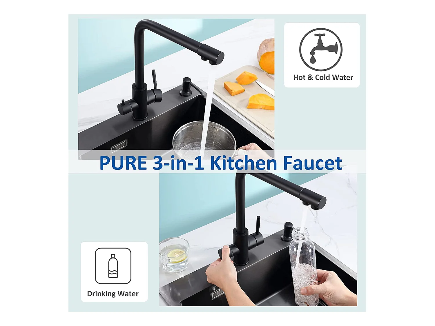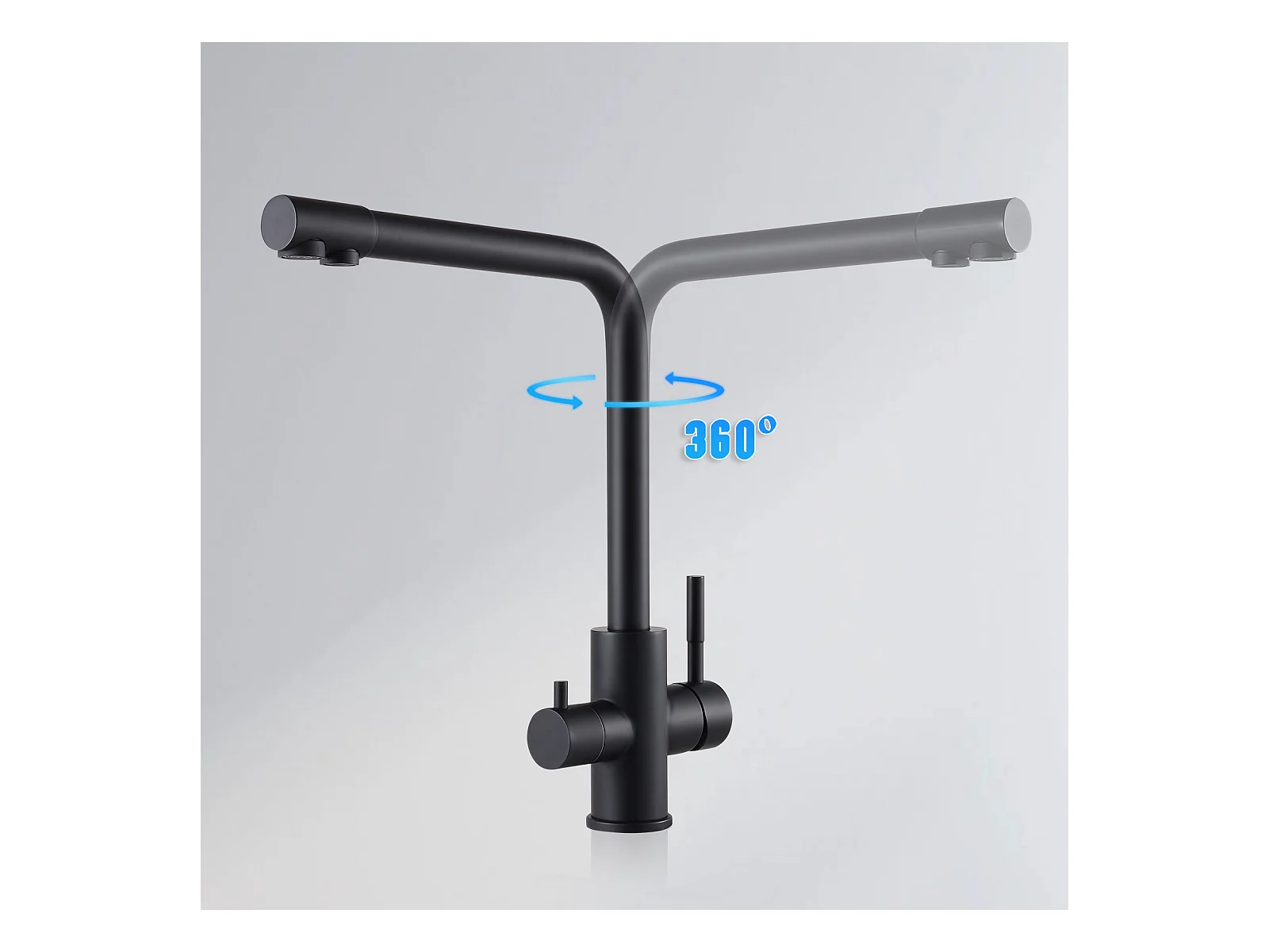2PCS 3-weg keukenkraan, 3 in 1 keukenmengkraan voor osmosesysteem, schoonwaterkraan met 2 aparte bedieningshendels zwart