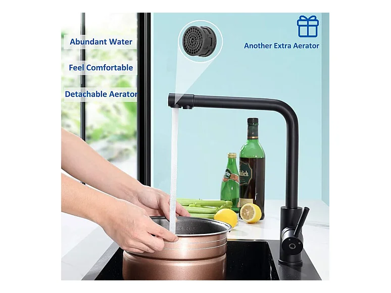 Keukenmengkraan met uittrekbare sproeikop Cecipa max - 360° draaibare roestvrijstalen kraan Zwarte sproeikraan met verwijderbare bubbler, EU-model