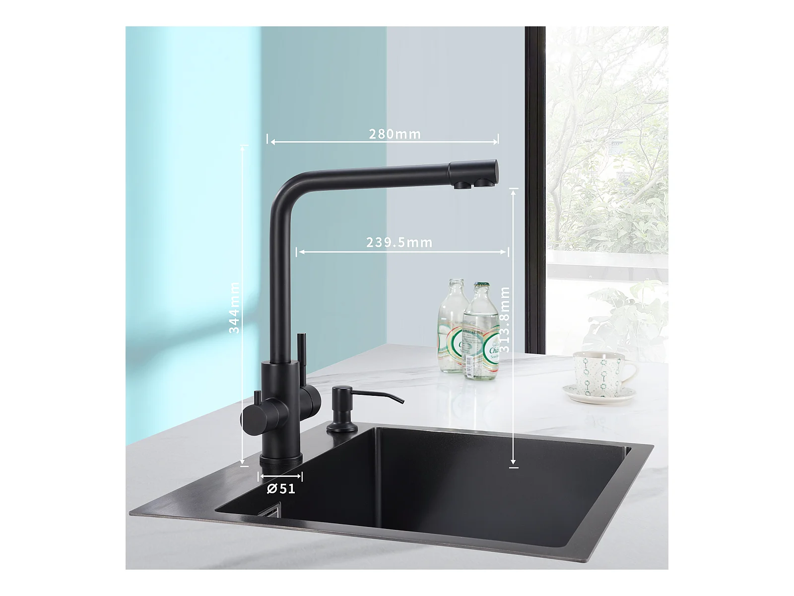 Cecipa max 3 in 1 keukenkraan voor osmosesysteem zwart, 3-weg keukenmengkraan, schoonwaterkraan, EU-model