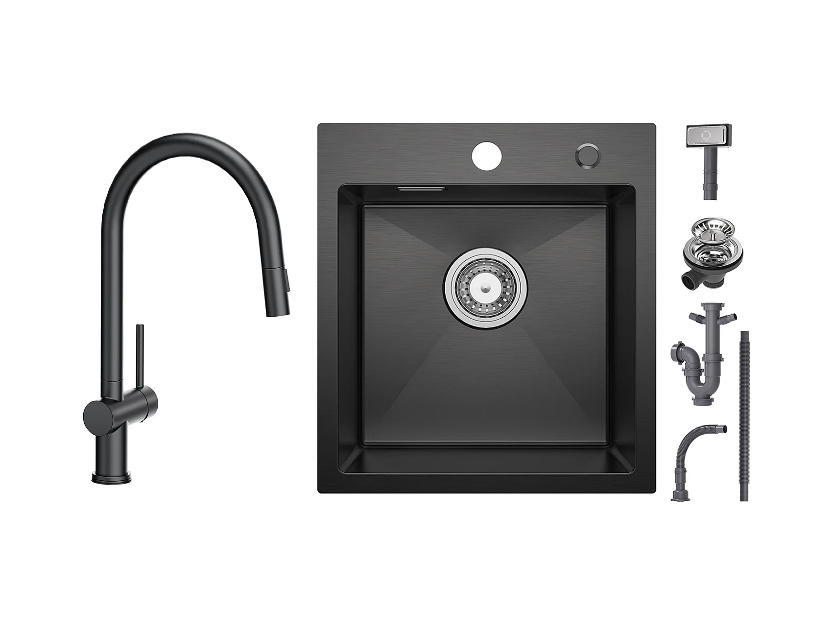 Spoelbak Orteon 45x40 cm + Zwarte Nymex Keukenkraan