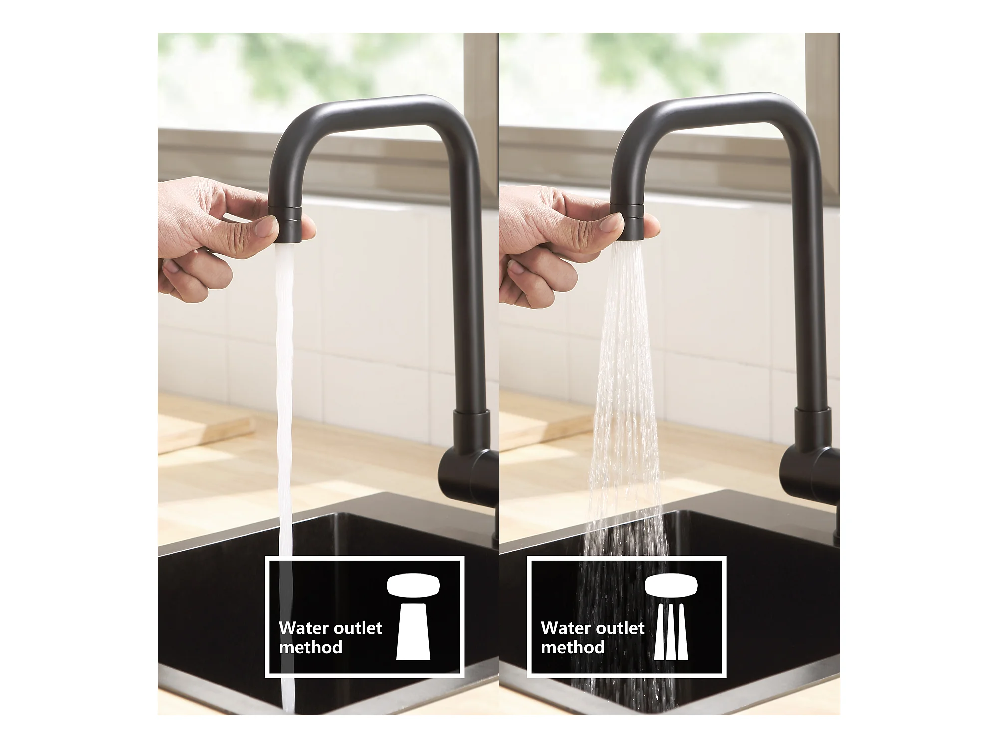 Kraan voor keuken van roestvrij staal - Mat zwart - ROMILY