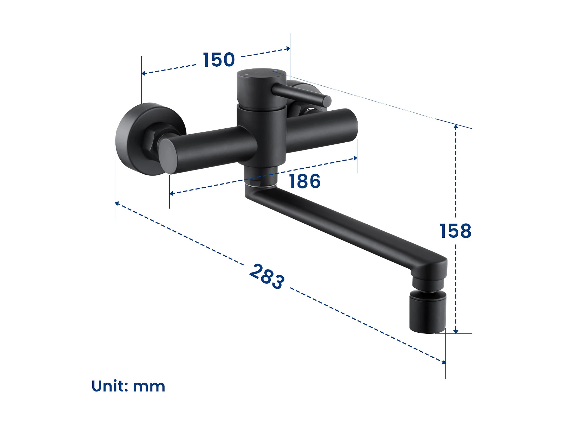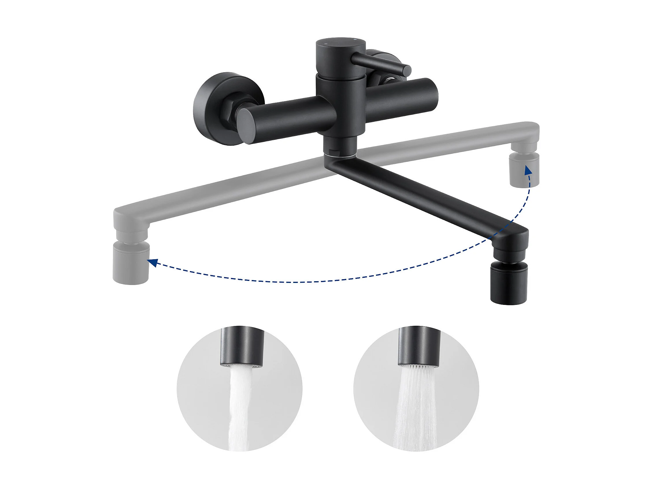 CECIPA MAX Keukenspoelbak 1 Kom 50×45×18,5CM Geborsteld RVS Spoelbak + Wandmontage Keukenmengkraan met 2 Jets Zwart