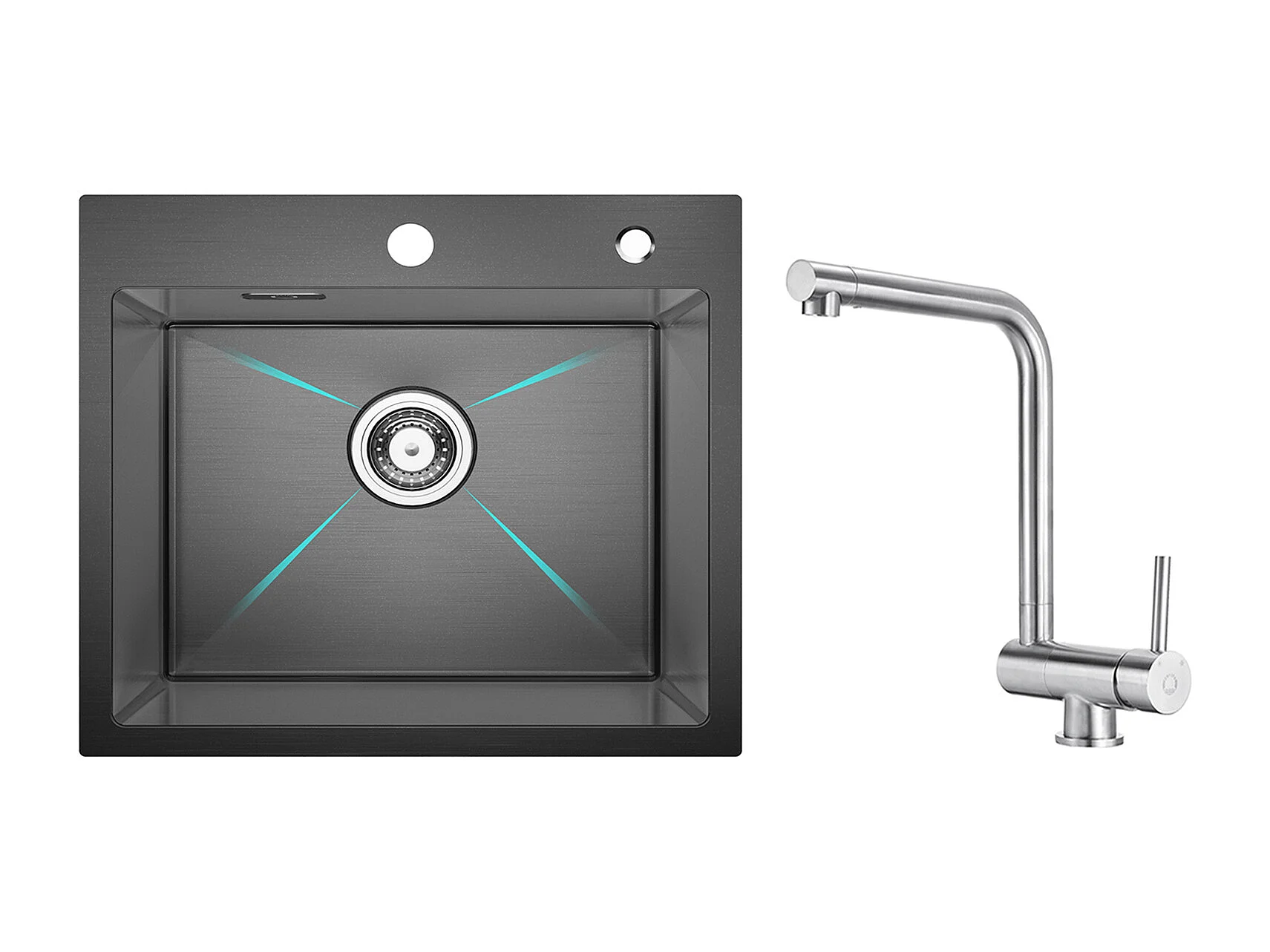 Cecipa MAX keukenspoelbak 1 kom 50×45×18,5CM zwarte roestvrijstalen spoelbak + mengkraan met uittrekbare spray, zwart