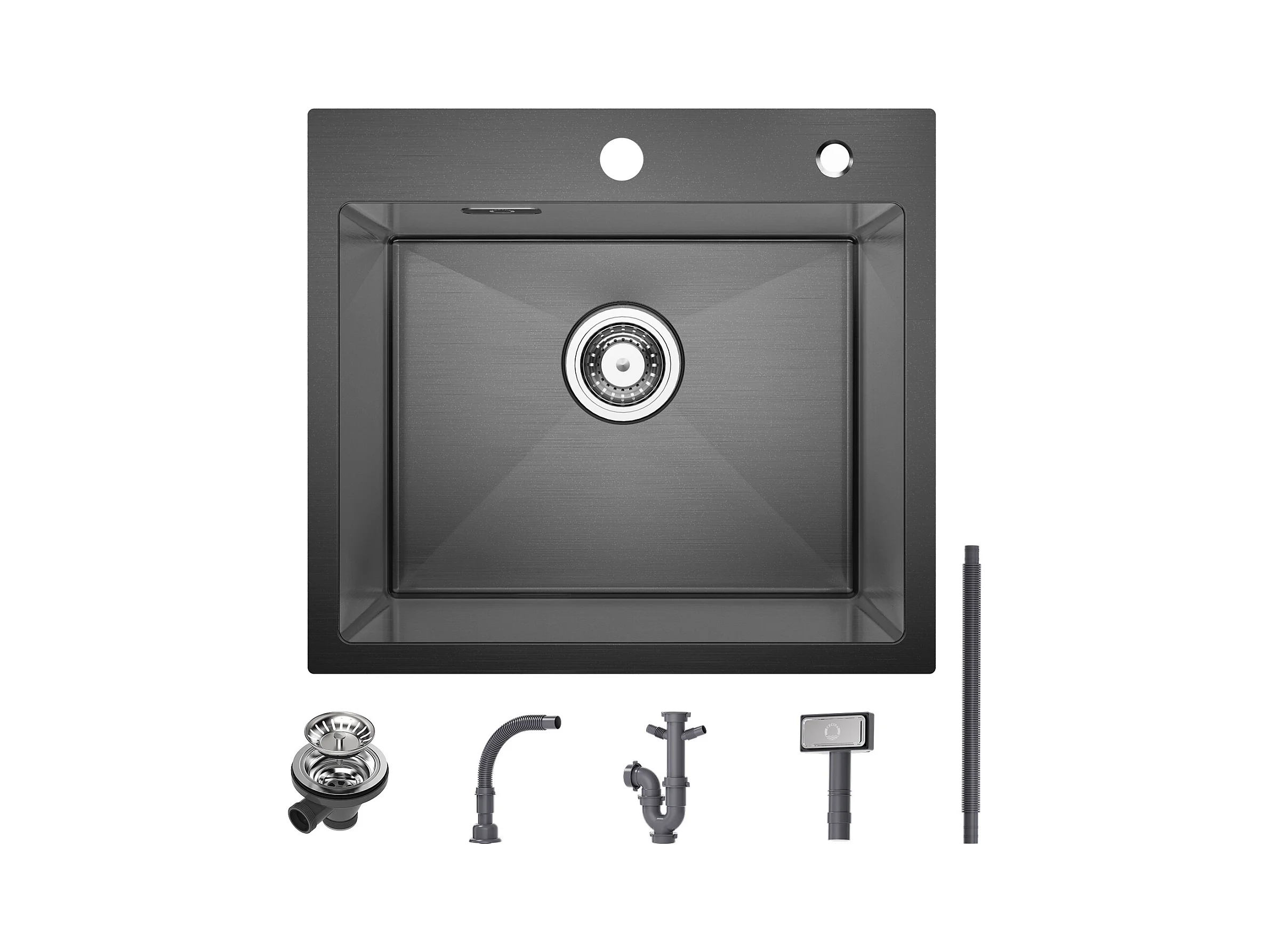 Cecipa MAX keukenspoelbak 1 kom 50×45×18,5CM zwarte roestvrijstalen spoelbak + mengkraan met uittrekbare spray, zwart