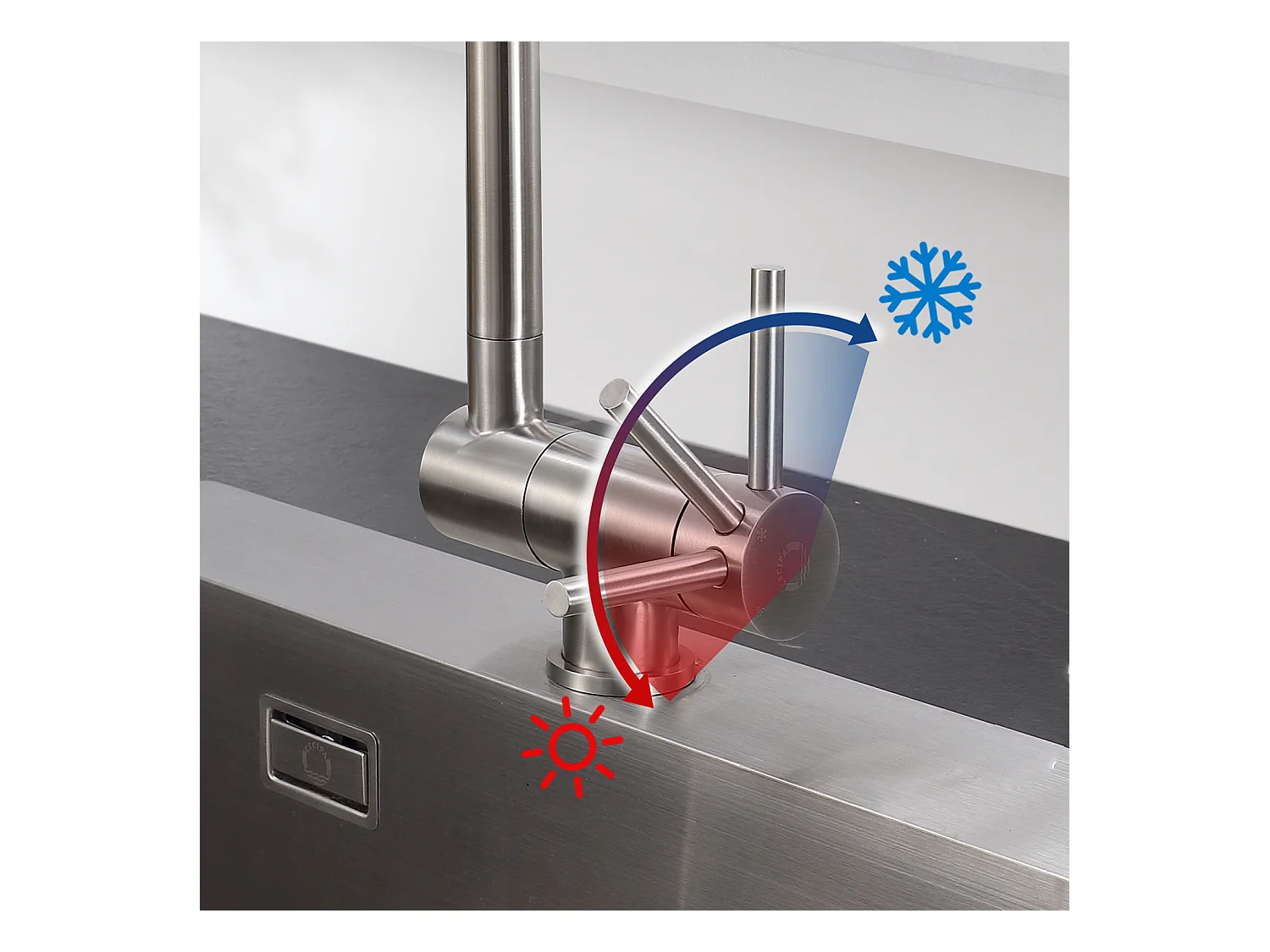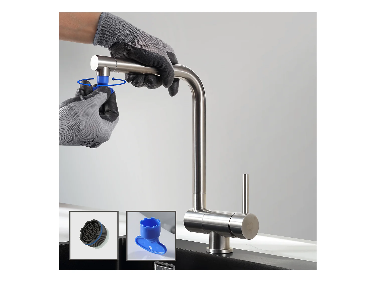 Cecipa max Opvouwbare spoelbakmengkraan in geborsteld roestvrij staal voor raam, spoelbakkraan keukenkraan met afneembare bubbler, EU-model