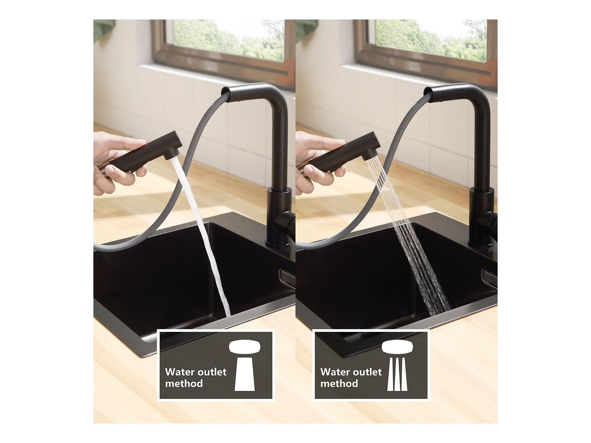 Kraan voor keuken van roestvrij staal - Mat zwart - ROMILY