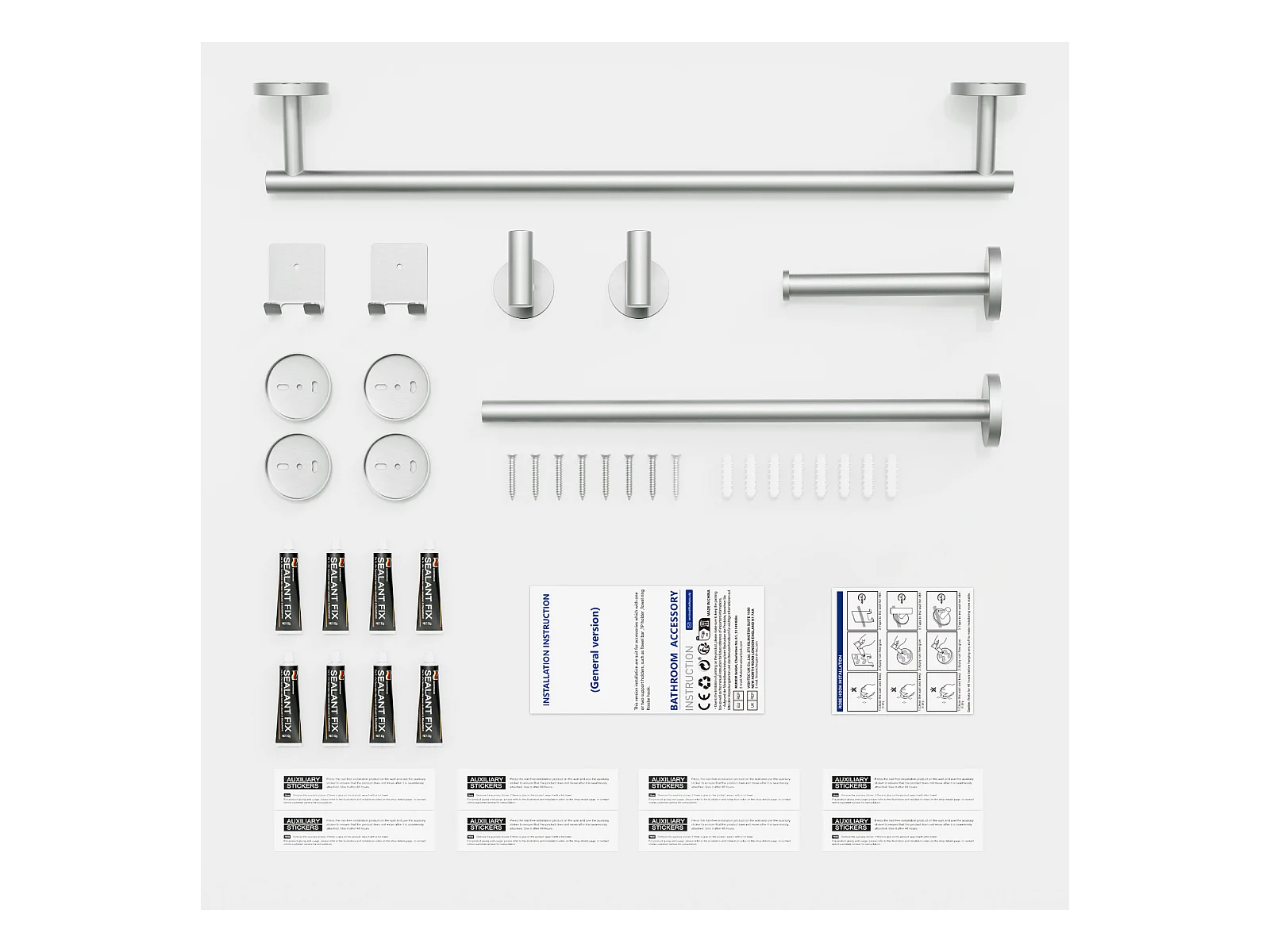 7-delige badkamerset - 1 handdoekstang + 1 handdoekstang aan de zijkant + 1 papierrolhouder + 4 haken (geborsteld)
