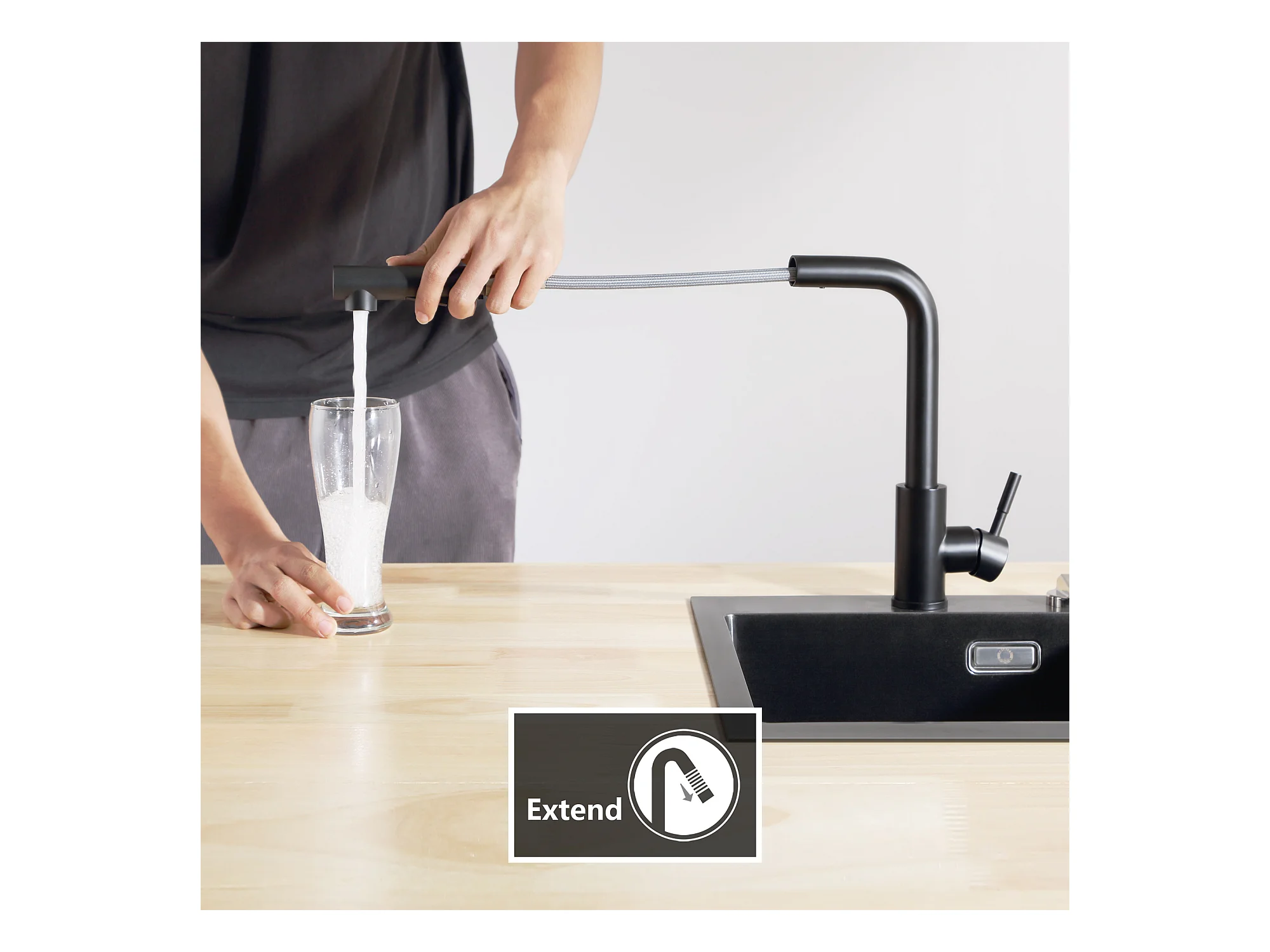 Cecipa max Zwarte Keukenmengkraan met Uittrekbare Uitloop, Eengreeps, 360° Rotatie, 2 Straalstanden Aanrechtkraan, EU-model