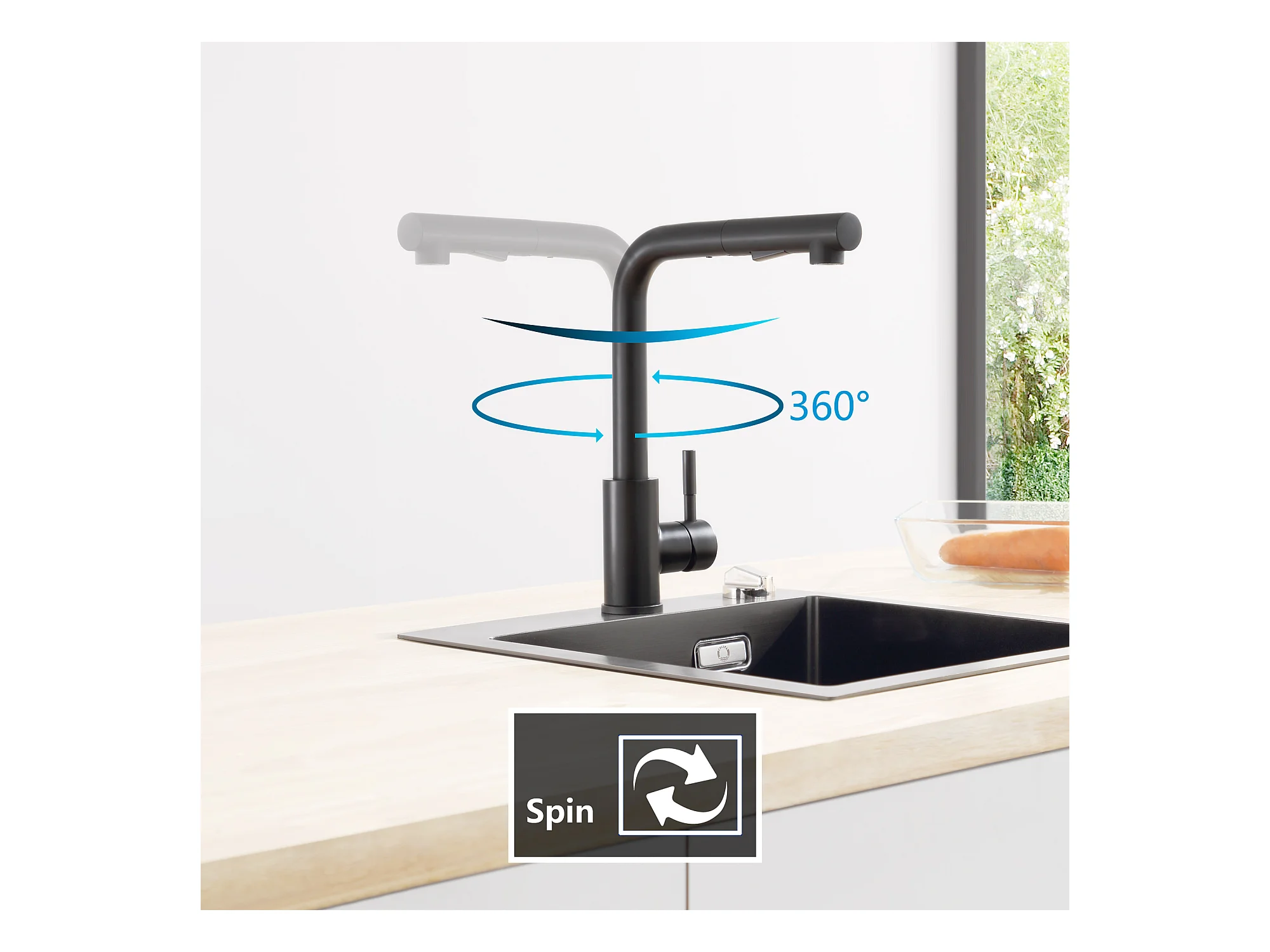 Cecipa max Keukenkraan met Uittrekbare Sproeier Keukenmengkraan 2 Straalstanden 360° Rotatie Zwart, EU-model
