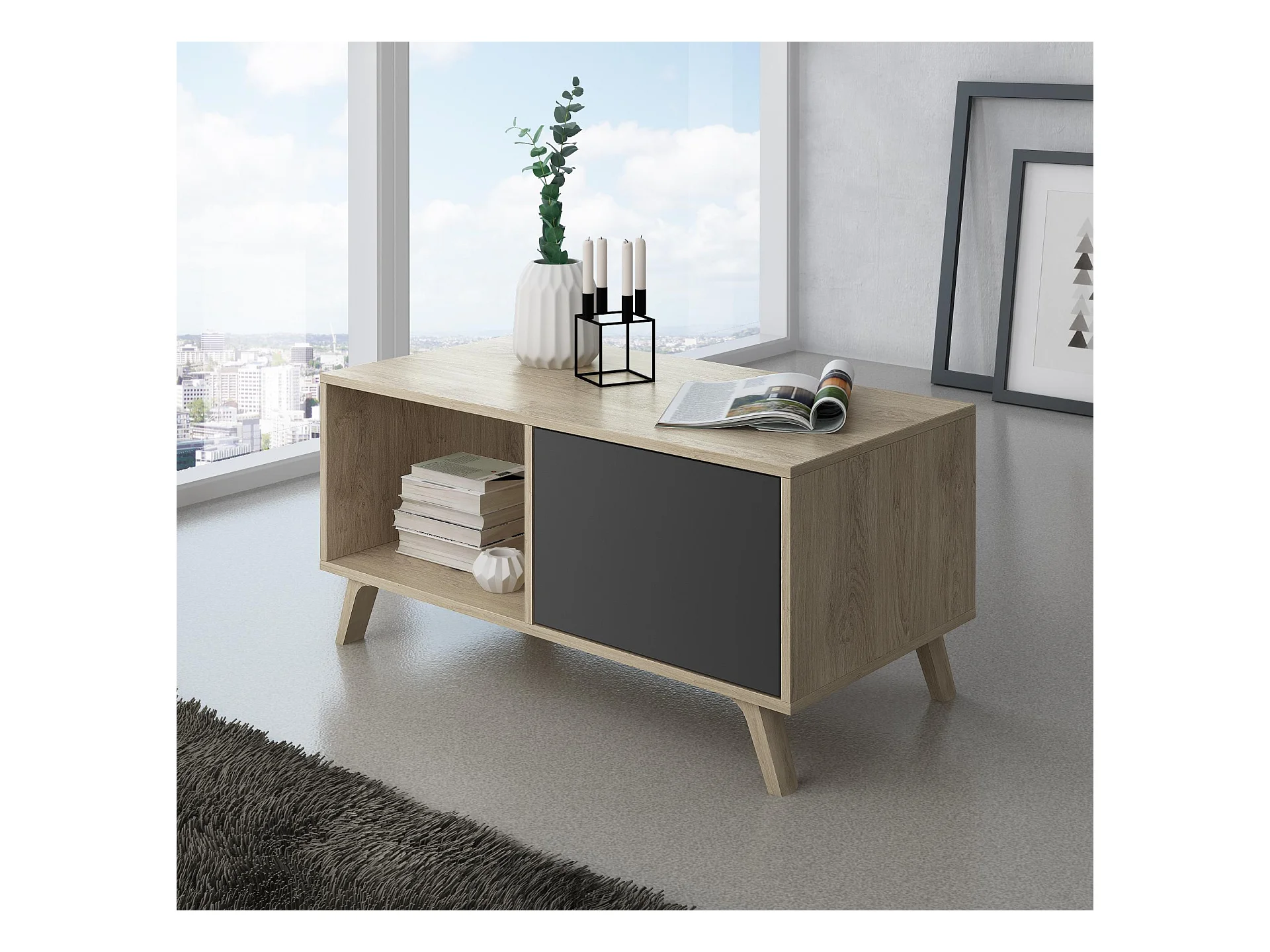 Central Low Table, Windmodel, 91,5x50x45cm, Woonkamer, hal, kantoor, Eik en grijs, Moderne stijl