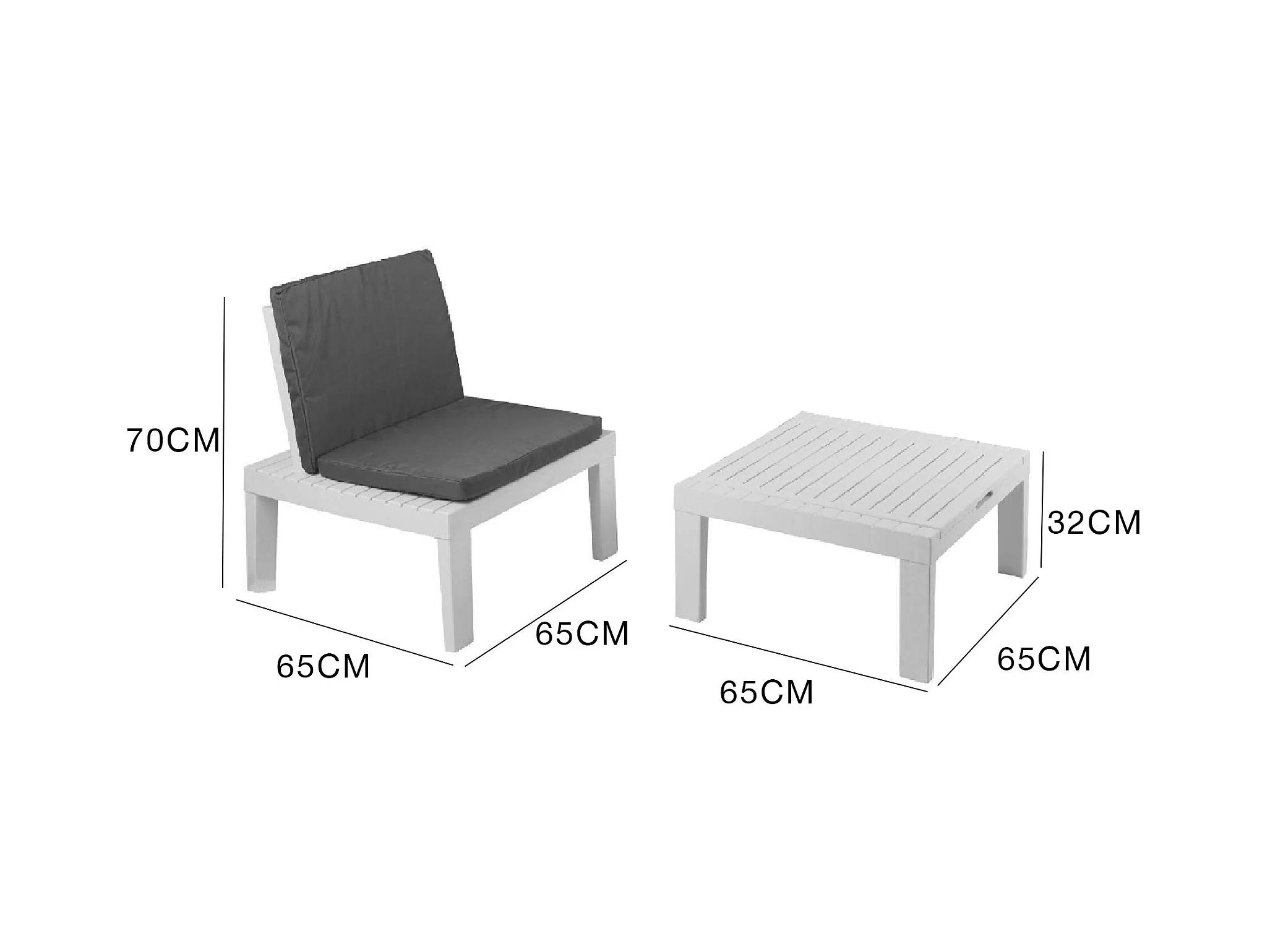 Dantonuc outdoor loungeset, Tuinset met 2 fauteuils en 1 tafel, Campingset, 100% Made in Italy, Wit