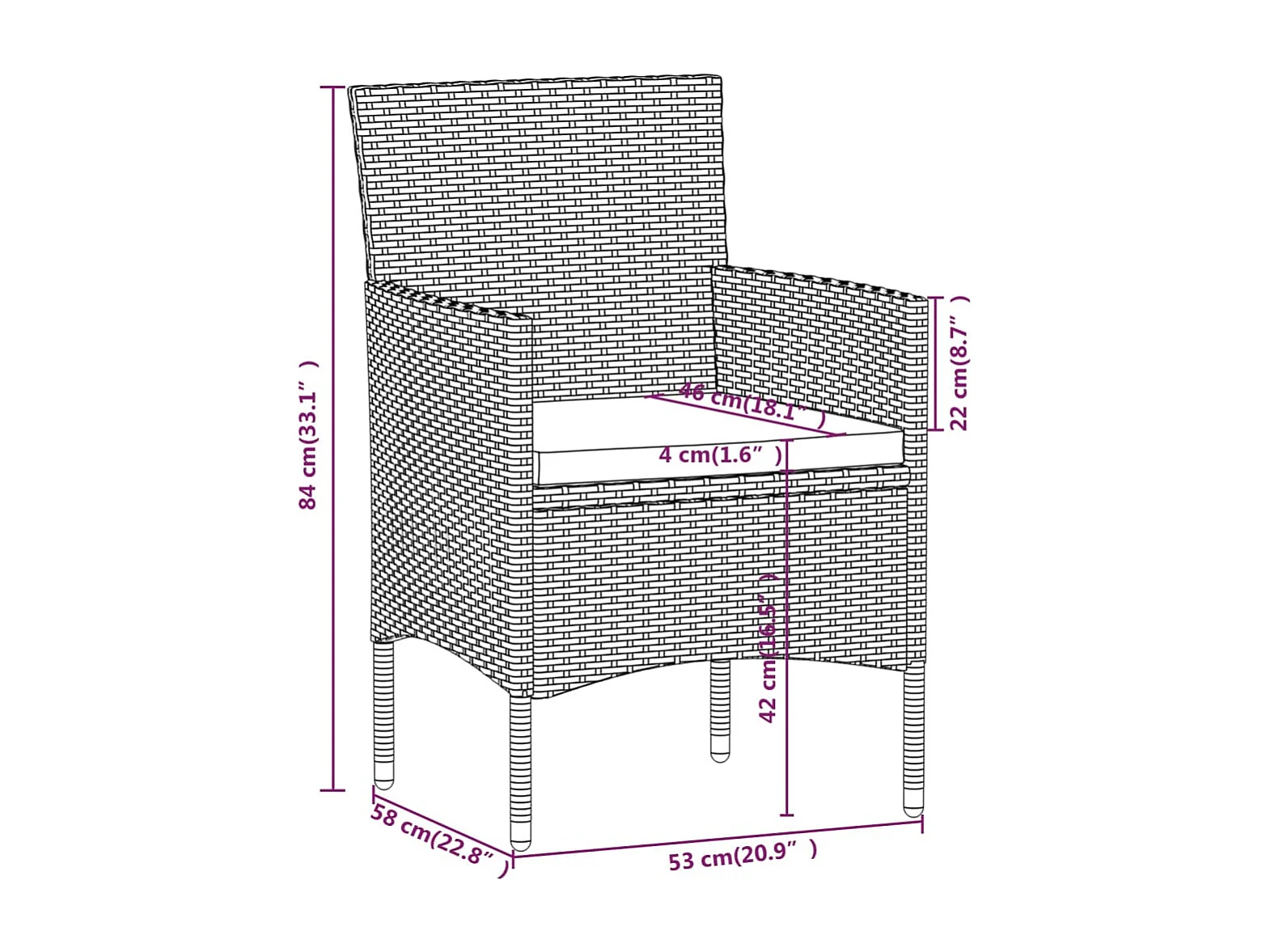 Set tuintafel en tuinstoelen rechthoek