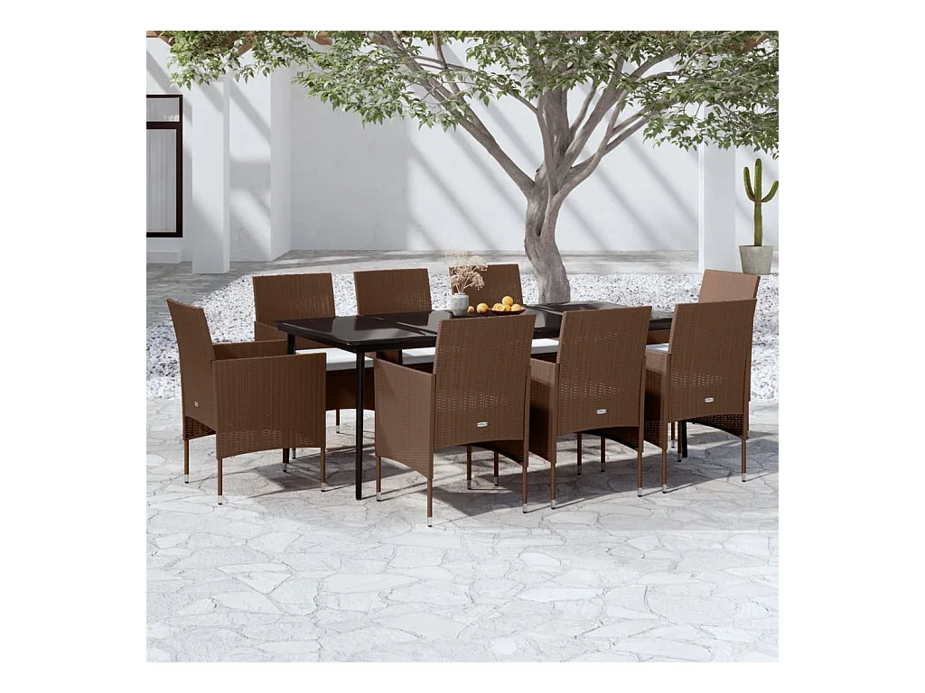 Cesarino 9-delige Tuinset met kussens bruin en zwart