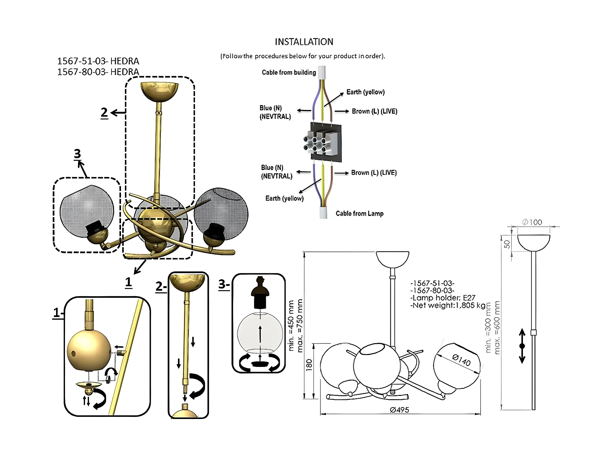 Hanglamp Cesena - Chroom - 49,5x49,5x75 cm - EPIKASA