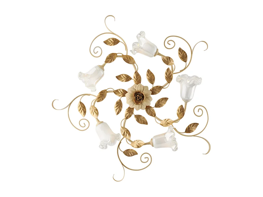 Cesto - Ivoor gebeitst gelakt ijzeren plafondlamp 5 lichts H.17 - Ø80 - BL274-PL5-AV