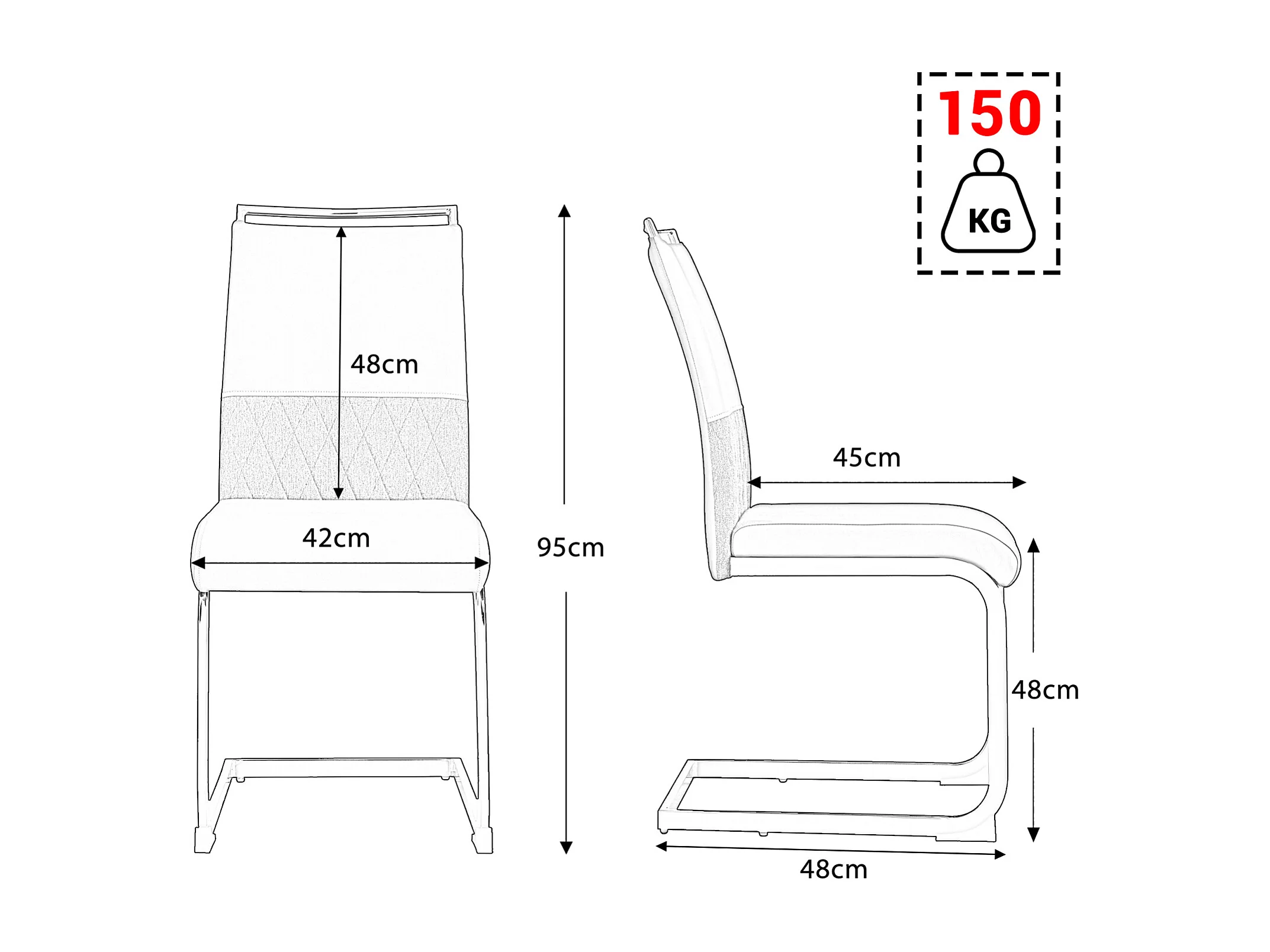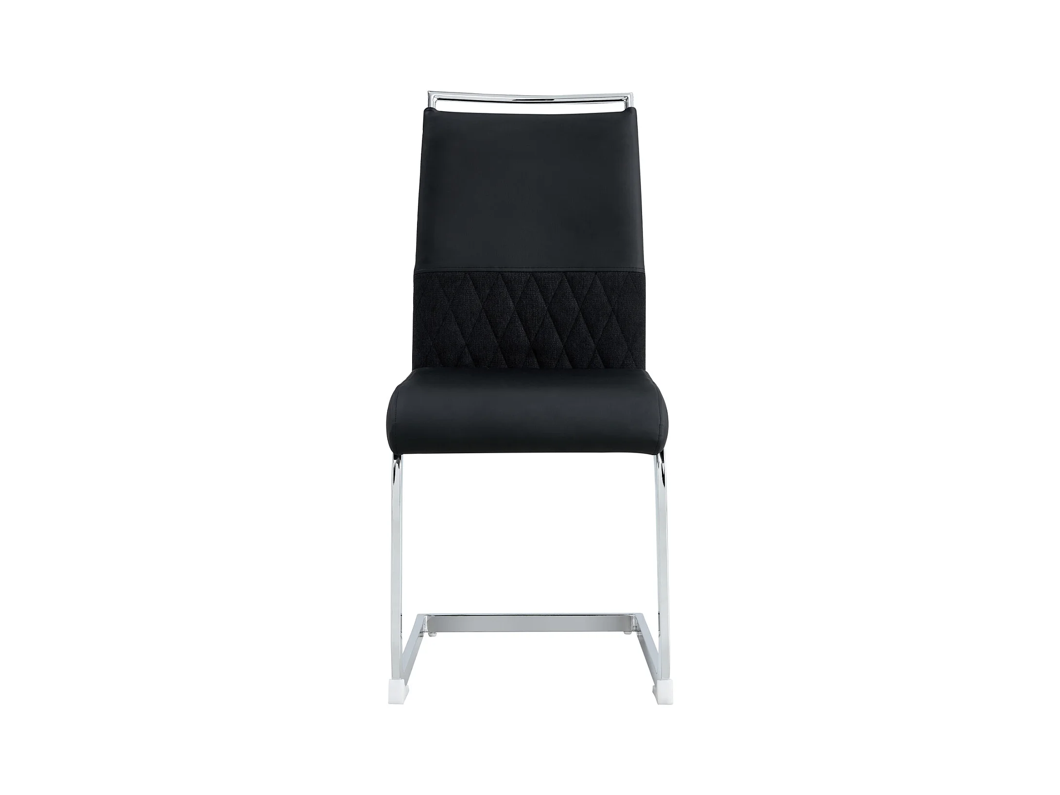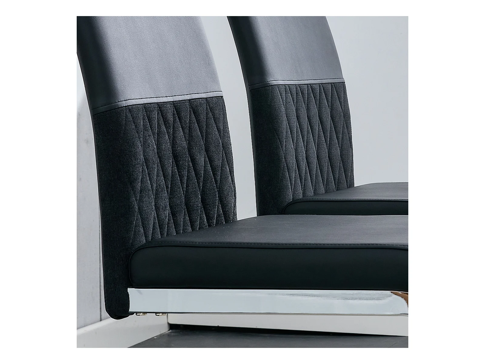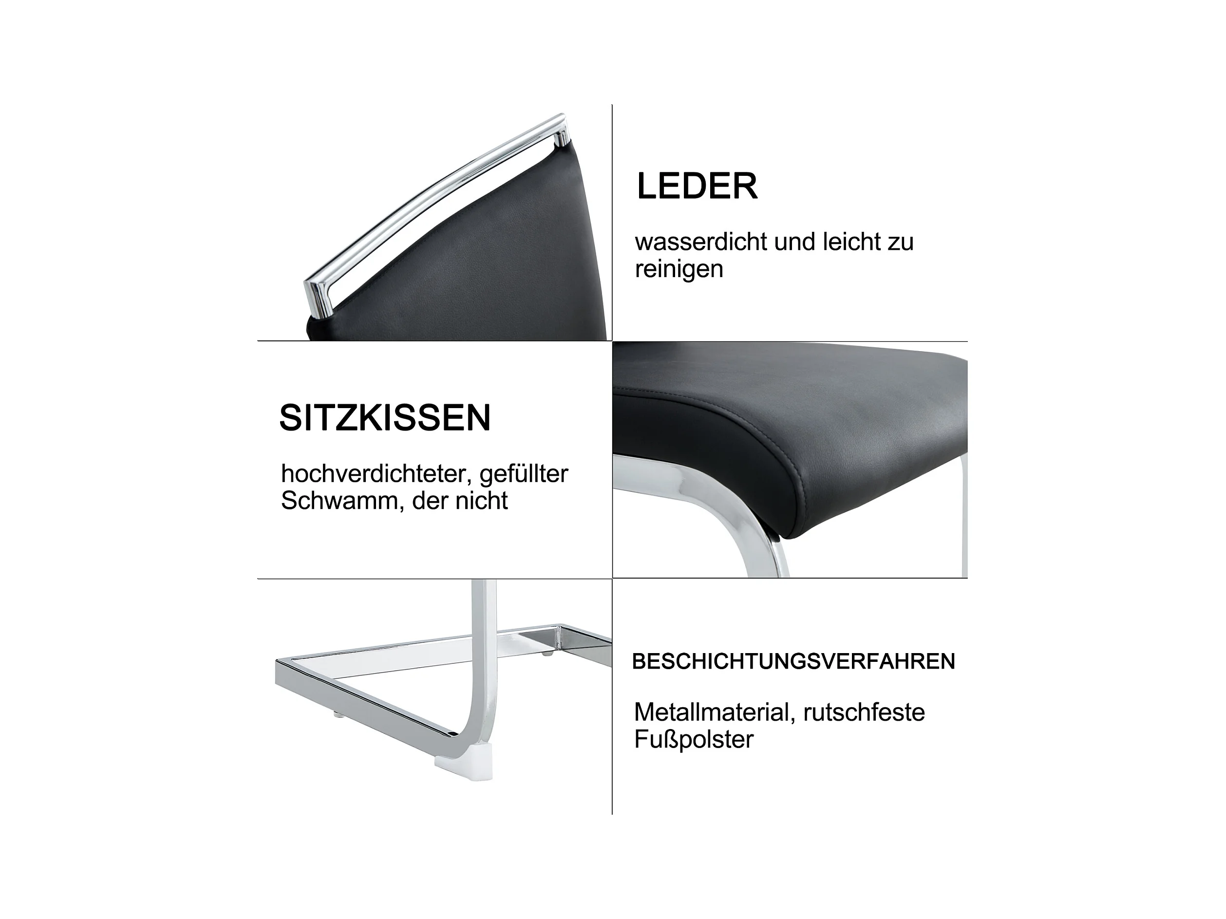 Sled Base Chair Set van 4 - Chromen metalen basis Draagt tot 120 kg Zachte vulling met kunstleren hoes - Zwart