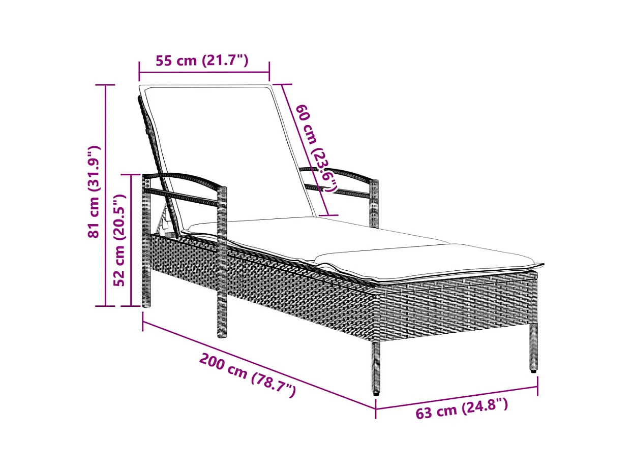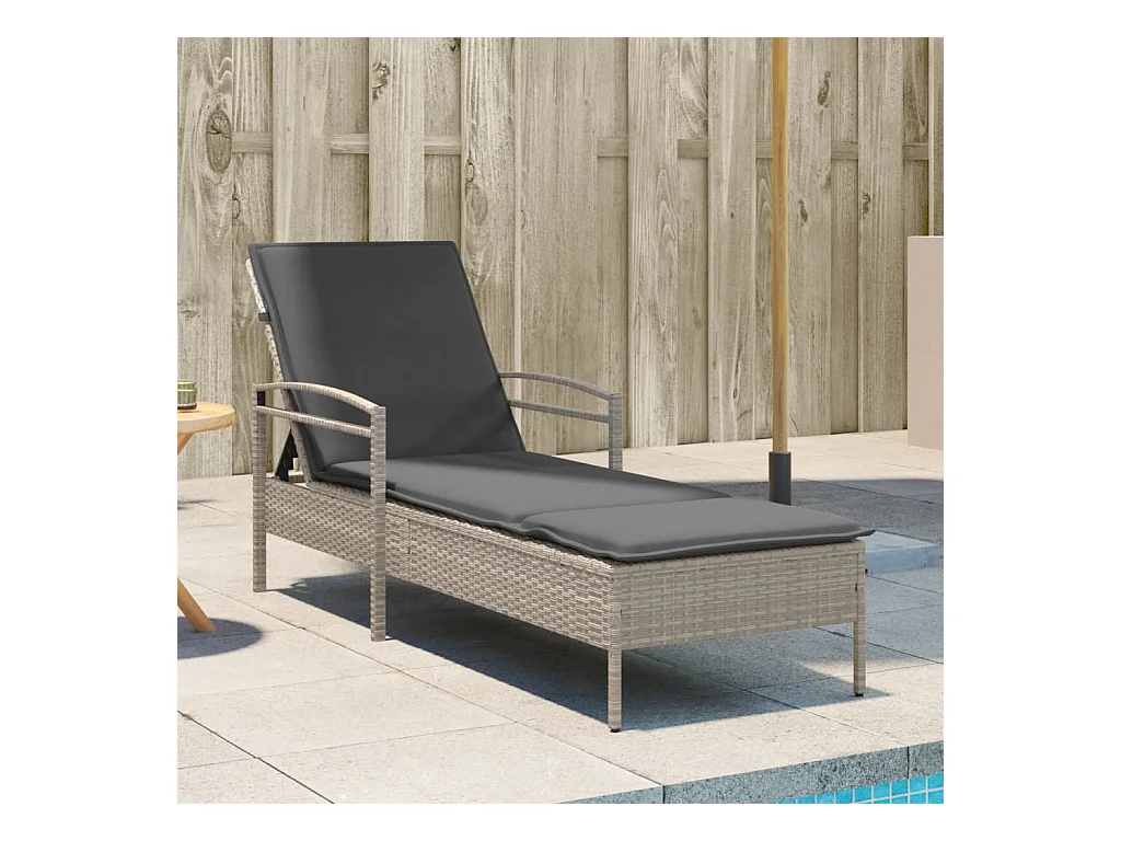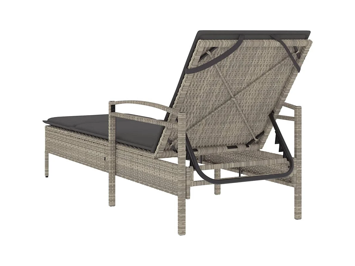 Chaise Longue met kussen, grijs, 63 x 200 x 81 cm, polyrotan (alleen VS)