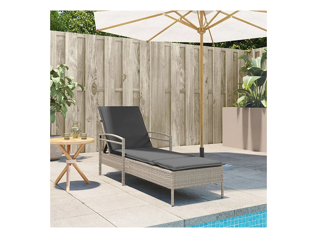 Chaise longue en lichtgrijs kussen 63x200x81 cm geweven hars