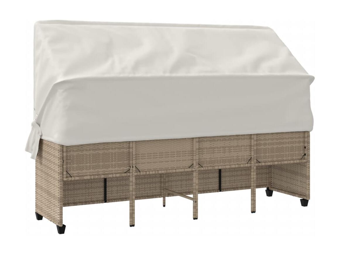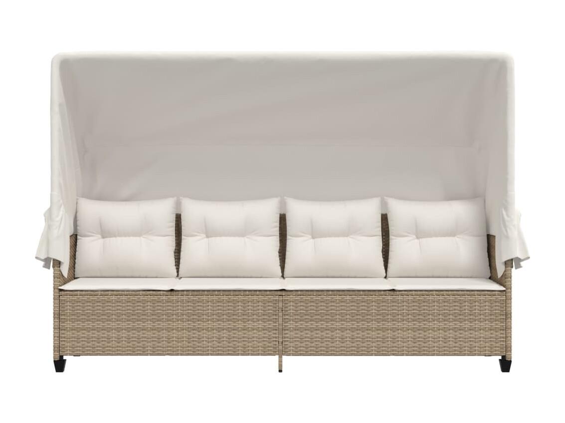 Chaise longue met baldakijn en beige geweven harskussens