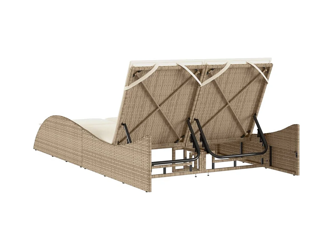Dubbele chaise longue met beige kunsthars rieten kussens